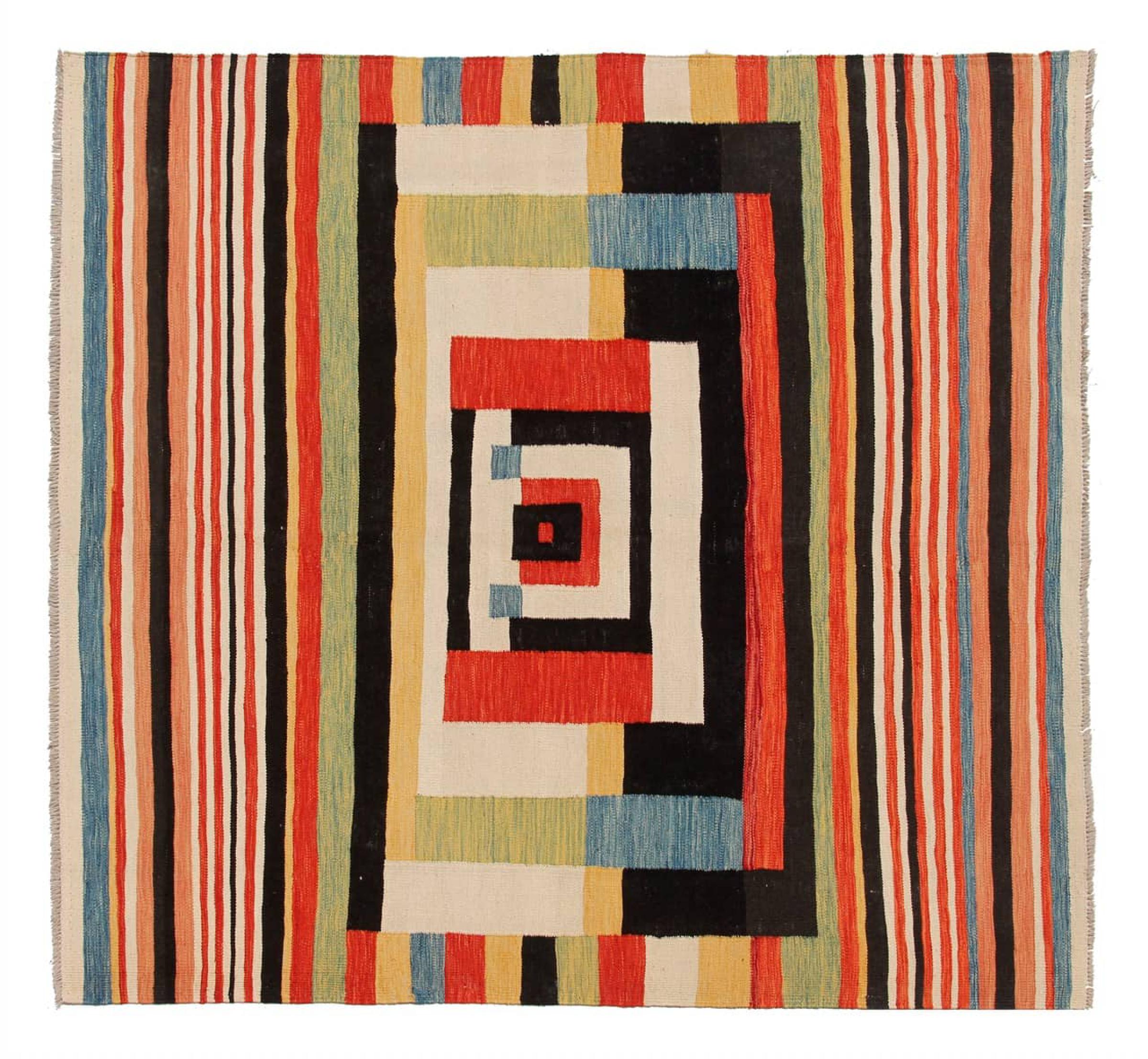Mattans ID: 315137004089777 Storlek: 194x196 cm Tjocklek: ap. 5 mm Tillverkning: handvävd Lugg: Handspunnen ull Varp: Ull Ursprung: Afghanistan Ålder: Ny Vikt: ap. 8 kg Också känd som Kilim, Qilim, Chilim, Afgan, Afghán I lager: Unik - Endast 1 i lager