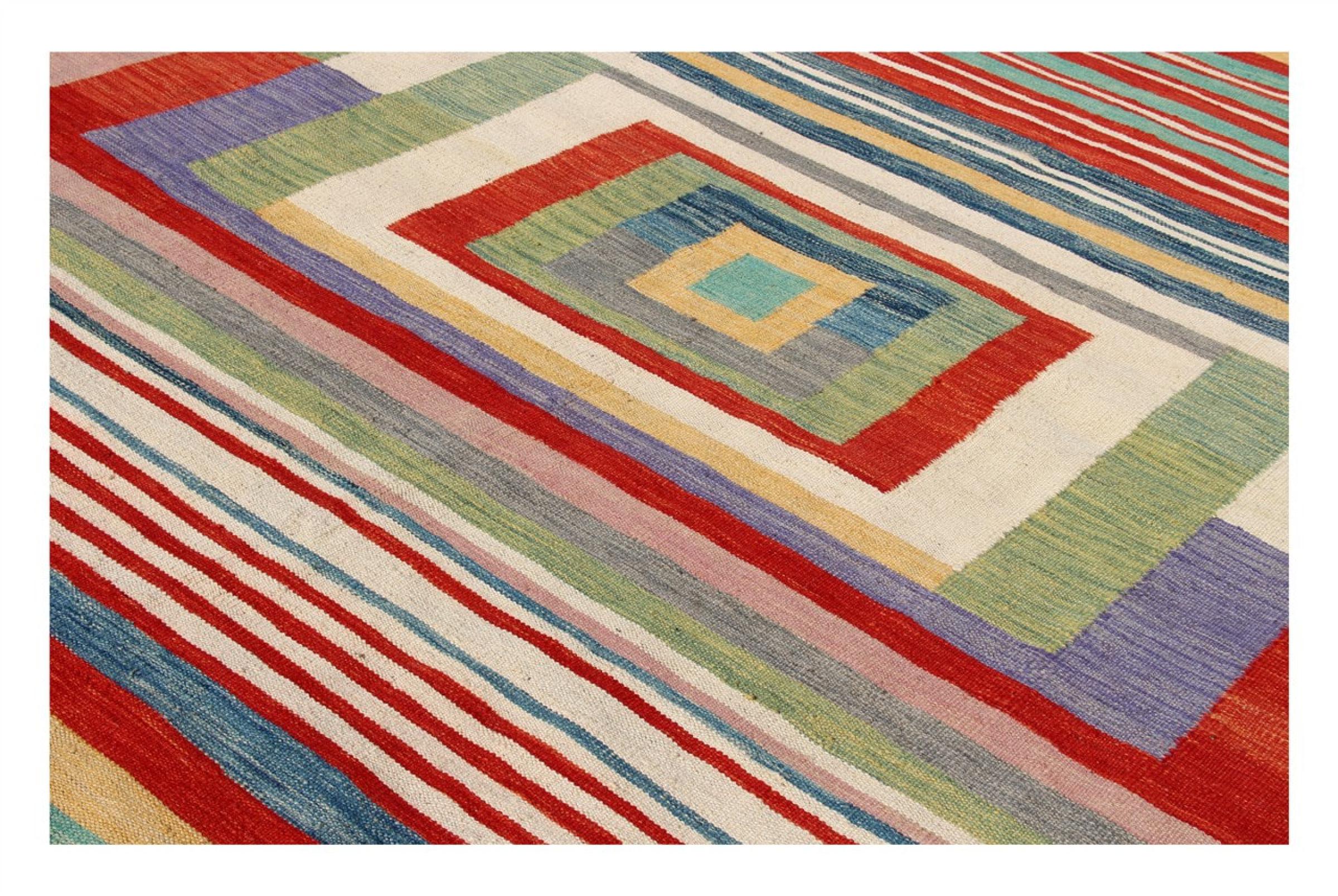 Samtidigt omfattar Kelim Afghan Edition också modernt tolkade färgvarianter. Dessa inkluderar harmoniska naturtoner som beige, grå eller oliv samt livliga accenter i turkos, grön, rosa eller flerfärgade kompositioner. Denna mångfald gör afghanska kelimer särskilt mångsidiga: De kan användas både som en traditionell blickfångare och som ett stilfullt designelement i moderna bostadsconceptrar.