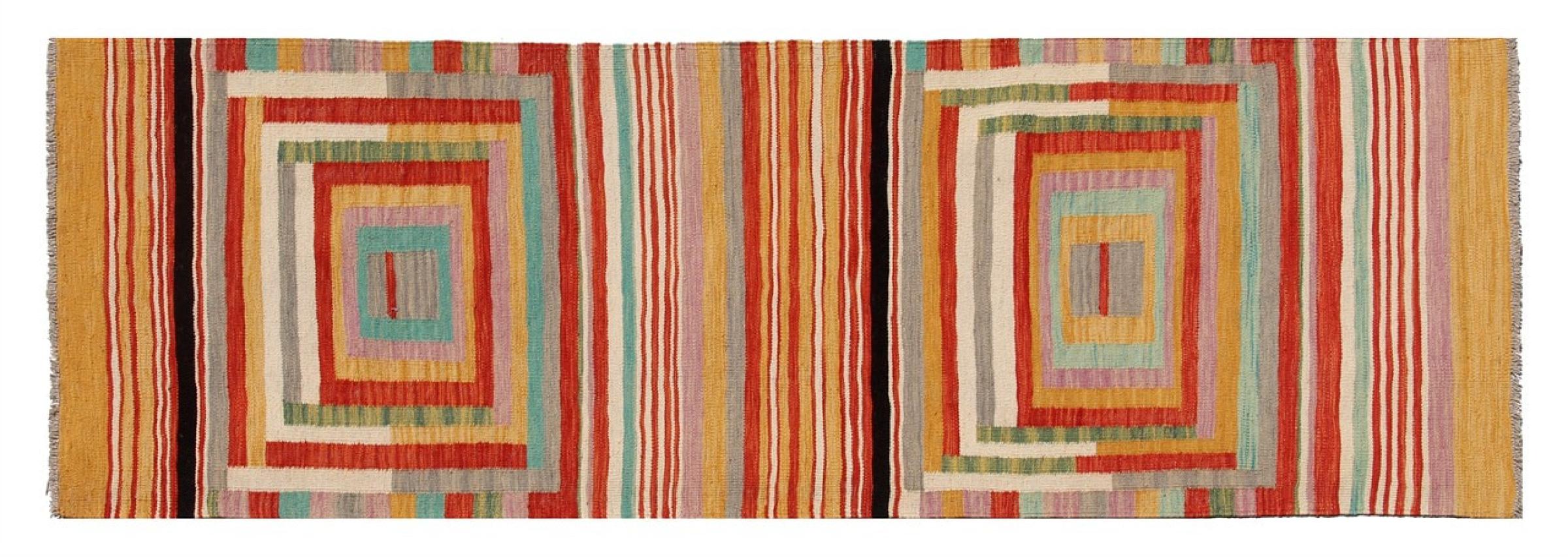 Mattans ID: 315114008812952 Storlek: 293x78 cm Tjocklek: ap. 5 mm Tillverkning: handvävd Lugg: Handspunnen ull Varp: Ull Ursprung: Afghanistan Ålder: Ny Vikt: ap. 5 kg Också känd som Kilim, Qilim, Chilim, Afgan, Afghán I lager: Unik - Endast 1 i lager