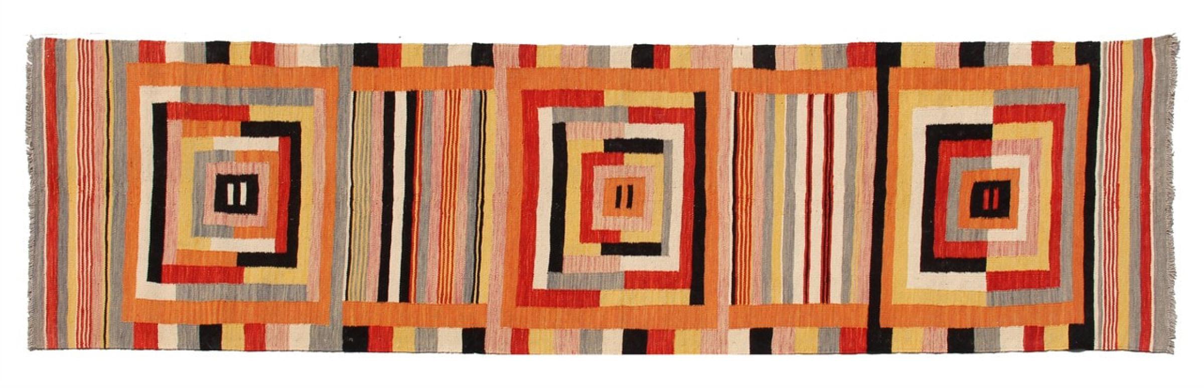 Mattans ID: 315117003998545 Storlek: 296x78 cm Tjocklek: ap. 5 mm Tillverkning: handvävd Lugg: Handspunnen ull Varp: Ull Ursprung: Afghanistan Ålder: Ny Vikt: ap. 5 kg Också känd som Kilim, Qilim, Chilim, Afgan, Afghán I lager: Unik - Endast 1 i lager
