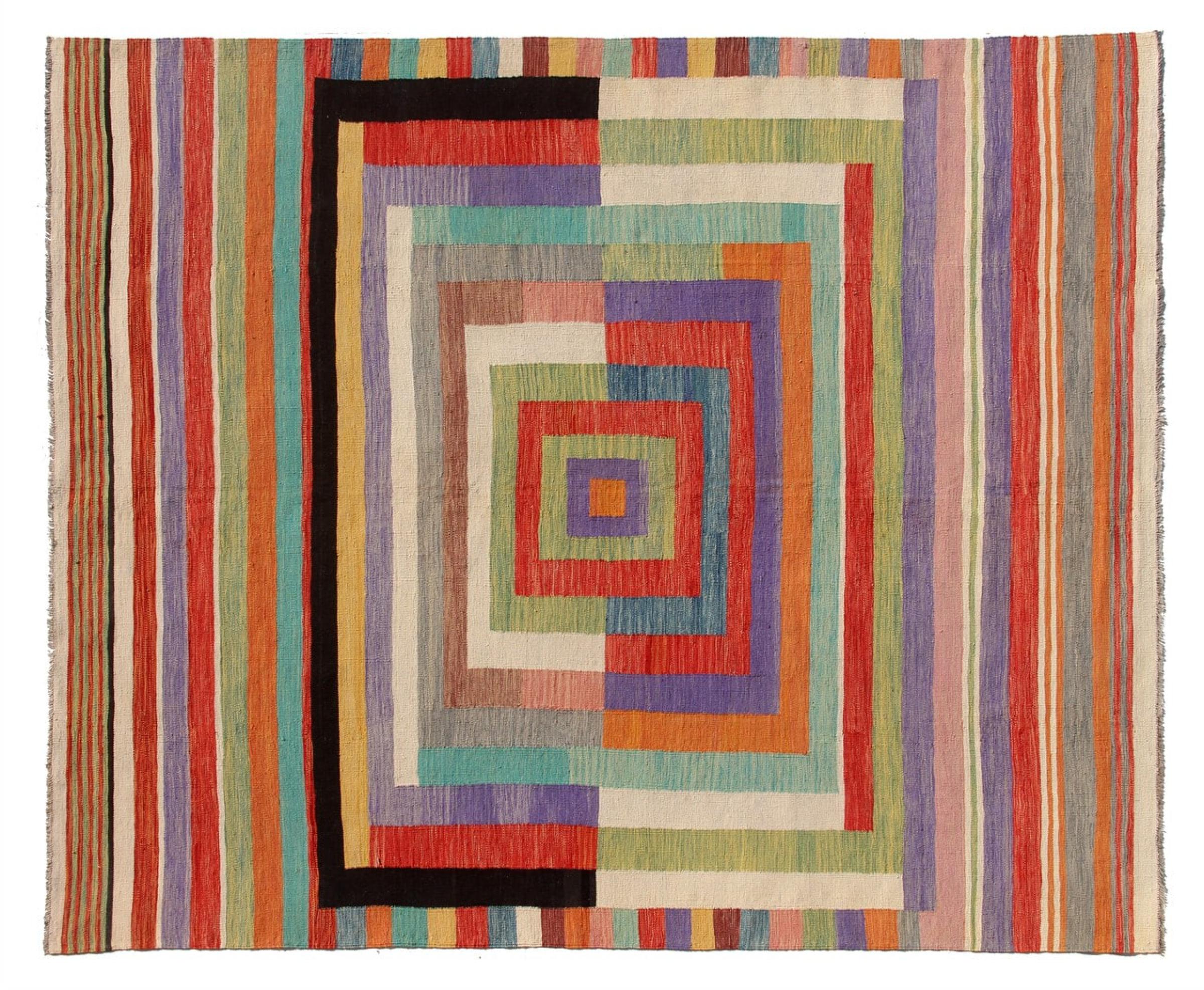 Mattans ID: 314784006632347 Storlek: 297x241 cm Tjocklek: ap. 5 mm Tillverkning: handvävd Lugg: Handspunnen ull Varp: Ull Ursprung: Afghanistan Ålder: Ny Vikt: ap. 14 kg Också känd som Kilim, Qilim, Chilim, Afgan, Afghán I lager: Unik - Endast 1 i lager