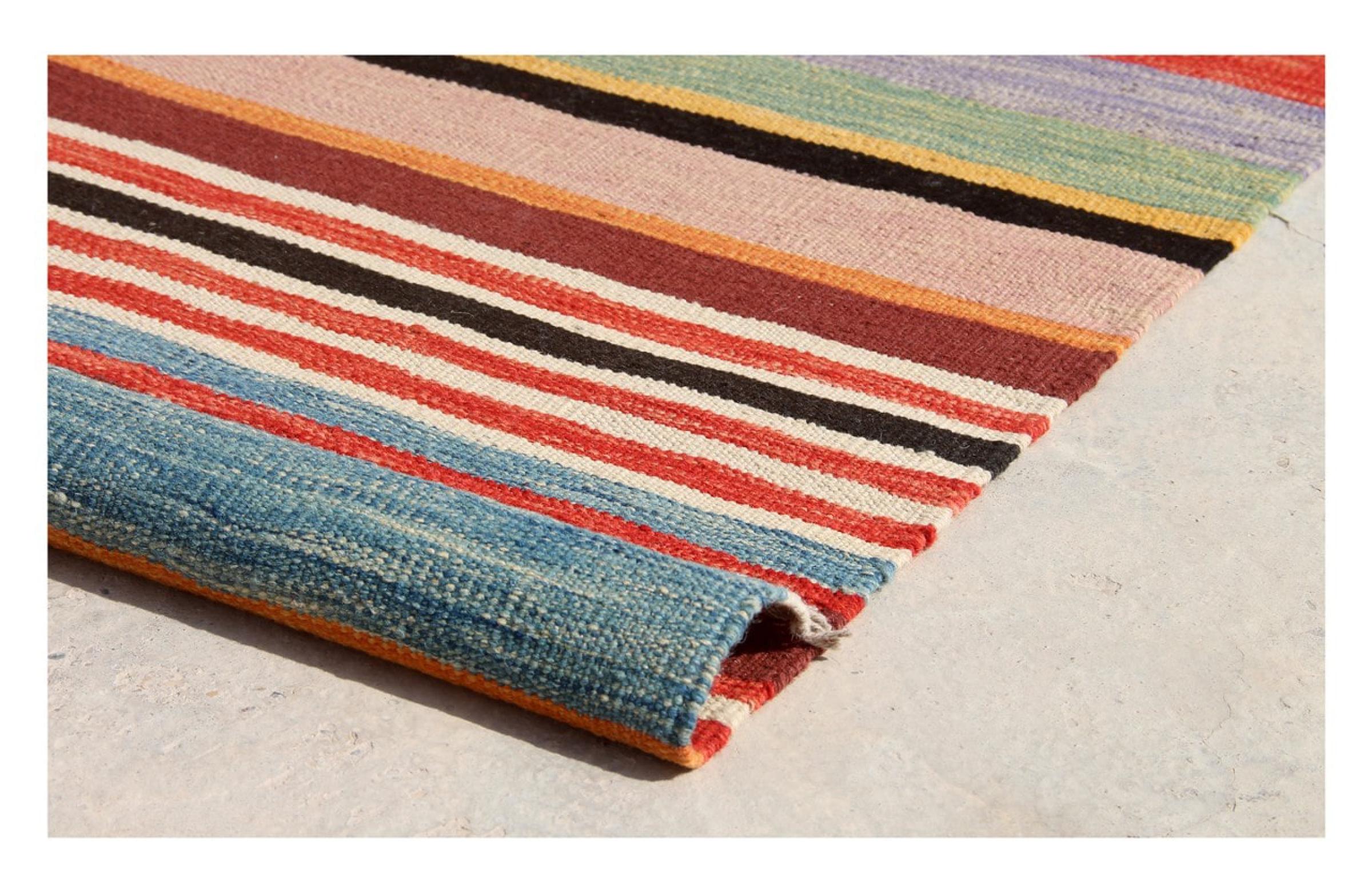 Samtidigt omfattar Kelim Afghan Edition också modernt tolkade färgvarianter. Dessa inkluderar harmoniska naturtoner som beige, grå eller oliv samt livliga accenter i turkos, grön, rosa eller flerfärgade kompositioner. Denna mångfald gör afghanska kelimer särskilt mångsidiga: De kan användas både som en traditionell blickfångare och som ett stilfullt designelement i moderna bostadsconceptrar.