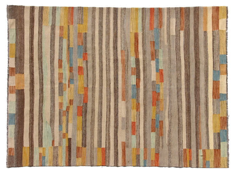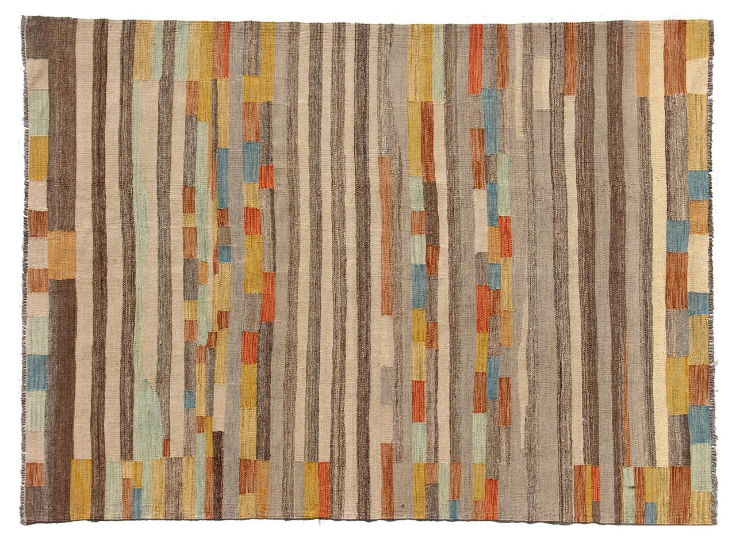 Denna handvävda kelim afghan är vacker tack vare de mångfacetterade färgerna och det typiska mönstret. Den var handvävd i Afghanistan av 100 % fårull. Den är utan tvekan mer robust och hållbar än maskintillverkade mattor. Dessutom har denna kelim en alldeles egen karaktär. En unik pjäs för dig och ditt hem som du aldrig kommer att hitta igen.