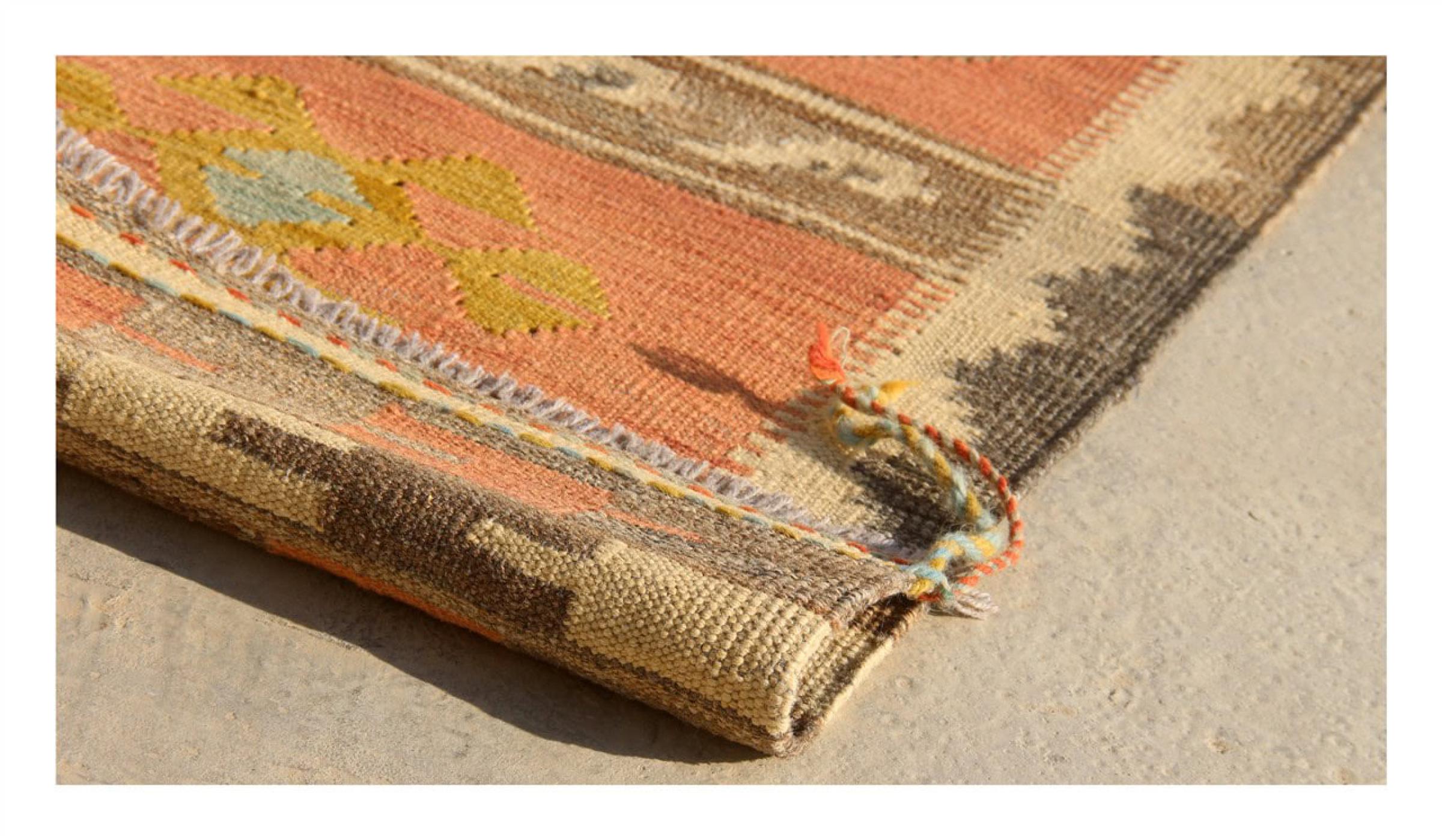 Denna matta tillverkas för hand på vävstolen som en platt väv. Flatweaves är mattor som inte har någon hög. Som namnet antyder är dessa mattor vävda och inte knutna. Detta resulterar i en platt matta med en strukturerad yta. Platta väver är inte så mjuka och mest tunnare än knutna mattor. Samtidigt är de betydligt mindre komplexa att tillverka och kan vanligtvis utformas från båda sidor (fram och bak). Deras mönster är vanligtvis geometriska, vilket beror på tyget.