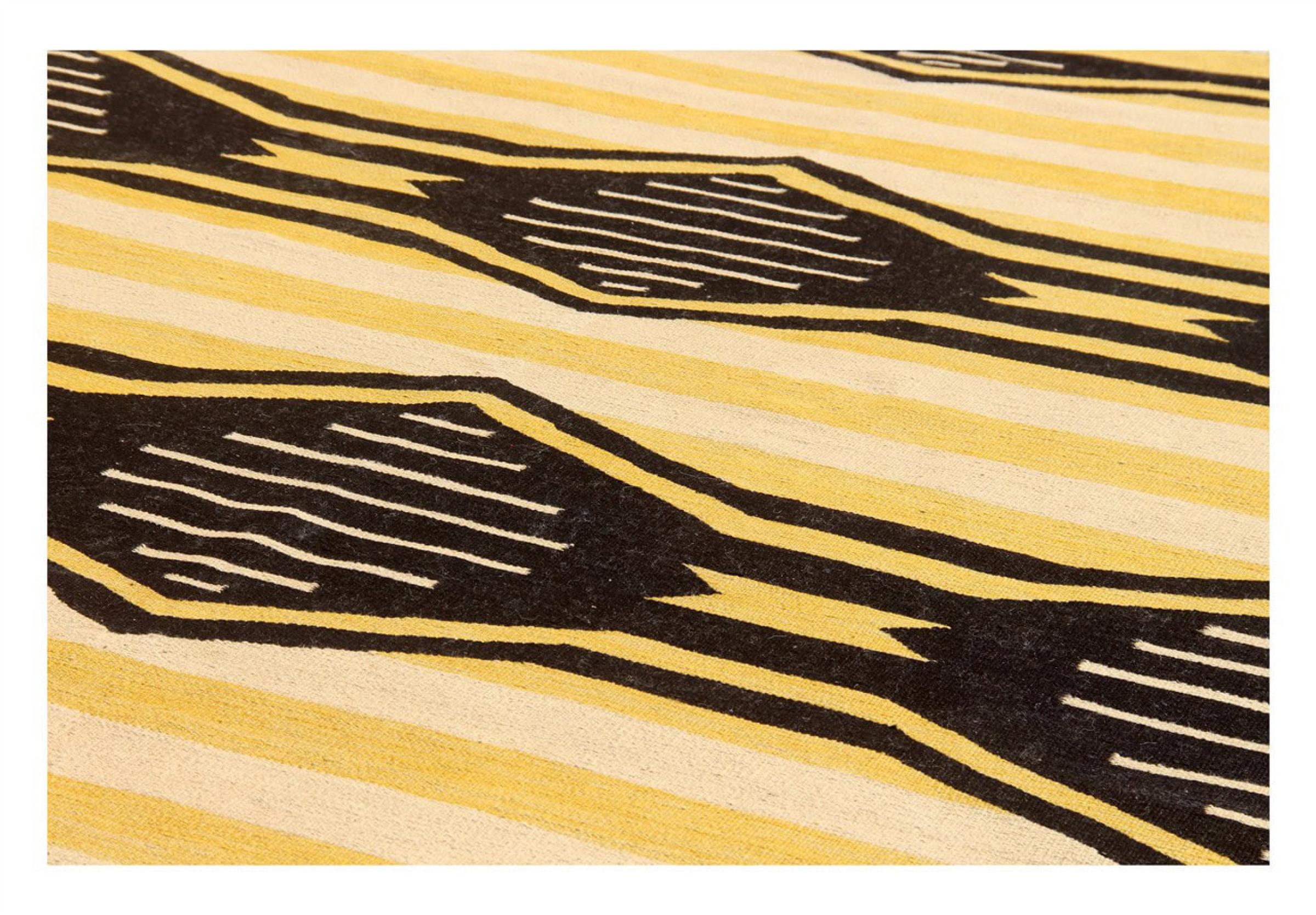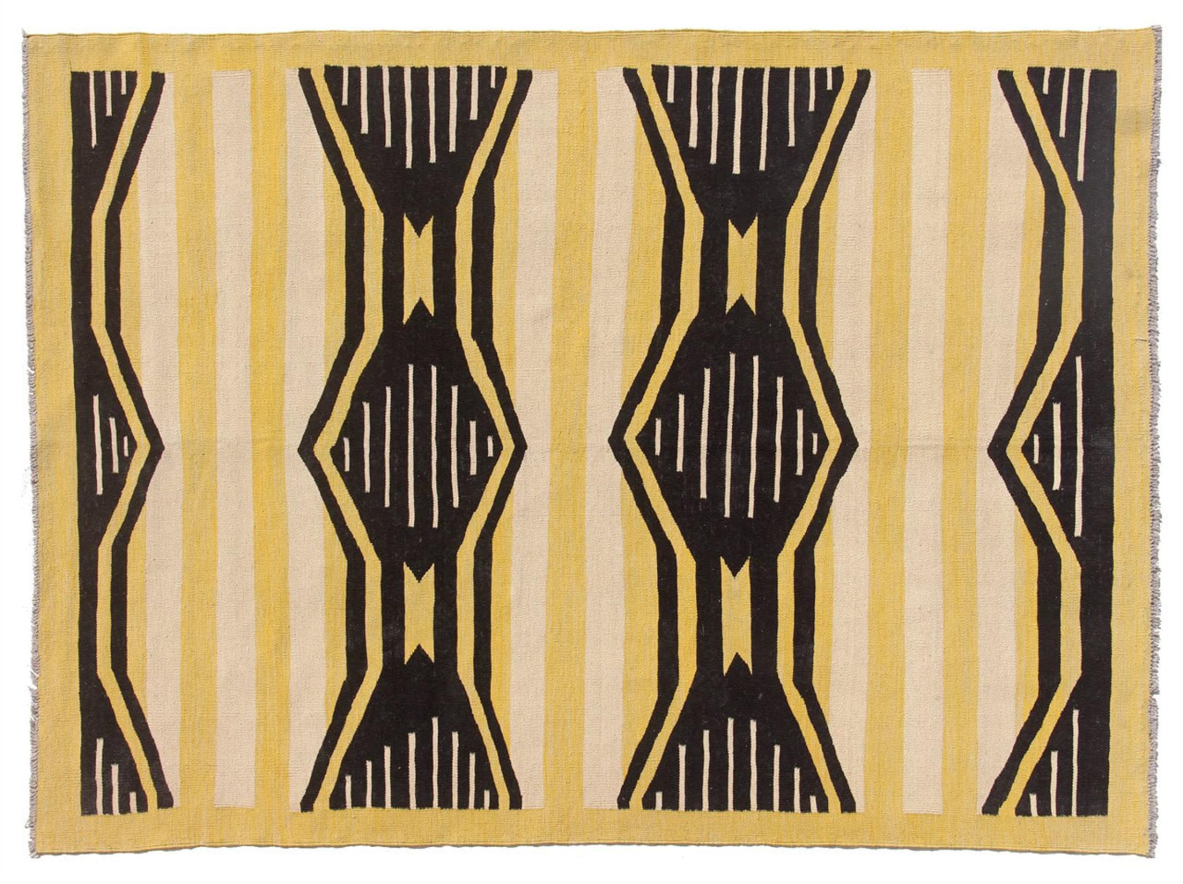 Denna matta tillverkas för hand på vävstolen som en platt väv. Flatweaves är mattor som inte har någon hög. Som namnet antyder är dessa mattor vävda och inte knutna. Detta resulterar i en platt matta med en strukturerad yta. Platta väver är inte så mjuka och mest tunnare än knutna mattor. Samtidigt är de betydligt mindre komplexa att tillverka och kan vanligtvis utformas från båda sidor (fram och bak). Deras mönster är vanligtvis geometriska, vilket beror på tyget.