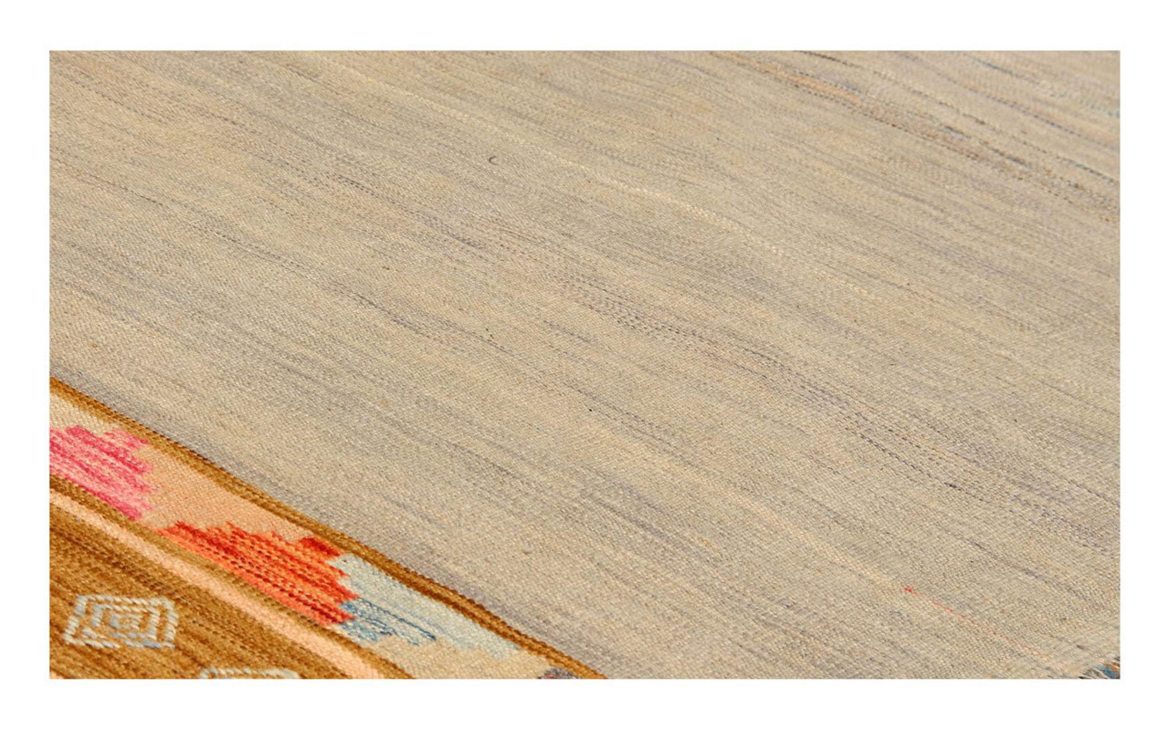 Denna matta tillverkas för hand på vävstolen som en platt väv. Flatweaves är mattor som inte har någon hög. Som namnet antyder är dessa mattor vävda och inte knutna. Detta resulterar i en platt matta med en strukturerad yta. Platta väver är inte så mjuka och mest tunnare än knutna mattor. Samtidigt är de betydligt mindre komplexa att tillverka och kan vanligtvis utformas från båda sidor (fram och bak). Deras mönster är vanligtvis geometriska, vilket beror på tyget.