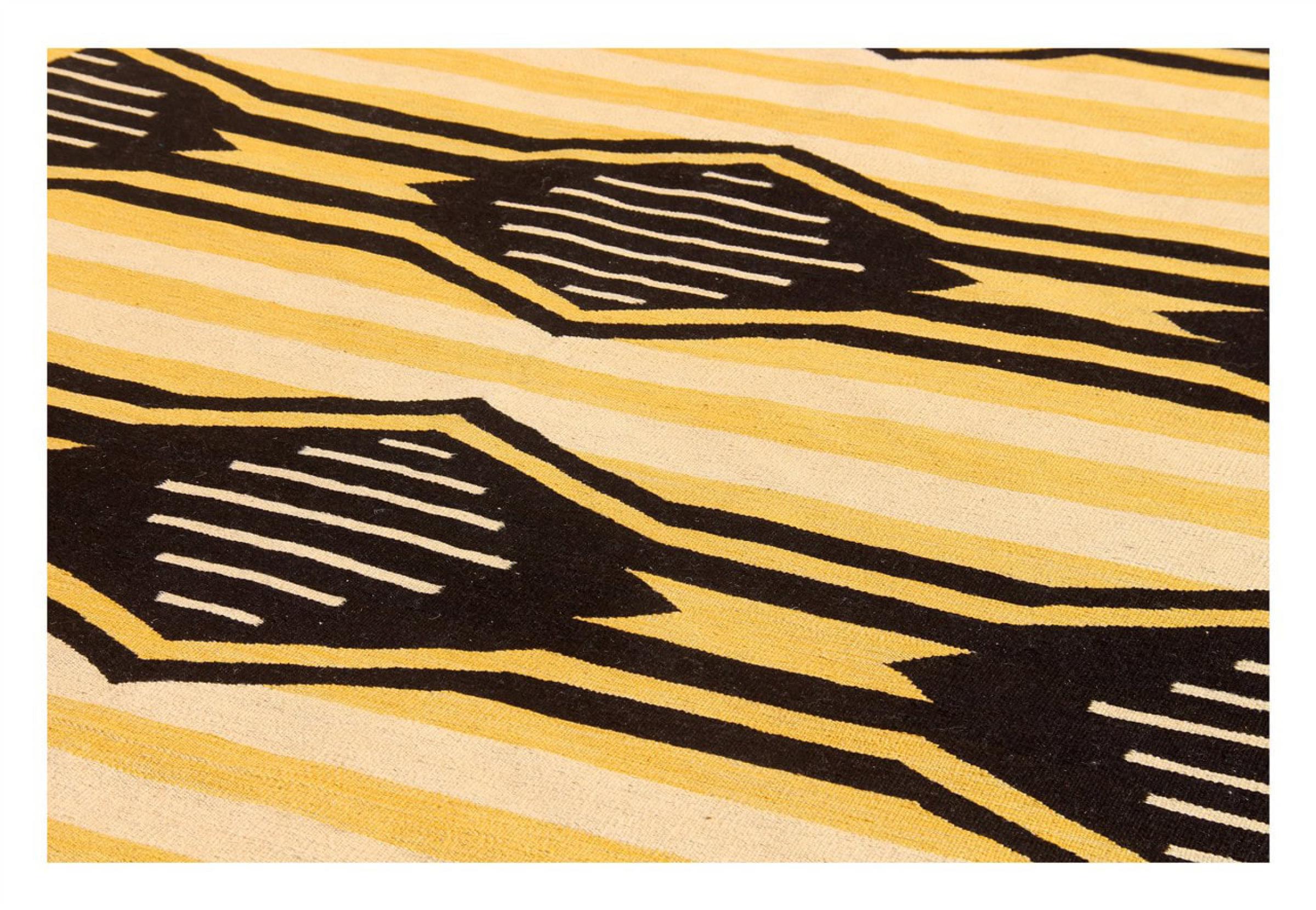 Denna matta tillverkas för hand på vävstolen som en platt väv. Flatweaves är mattor som inte har någon hög. Som namnet antyder är dessa mattor vävda och inte knutna. Detta resulterar i en platt matta med en strukturerad yta. Platta väver är inte så mjuka och mest tunnare än knutna mattor. Samtidigt är de betydligt mindre komplexa att tillverka och kan vanligtvis utformas från båda sidor (fram och bak). Deras mönster är vanligtvis geometriska, vilket beror på tyget.