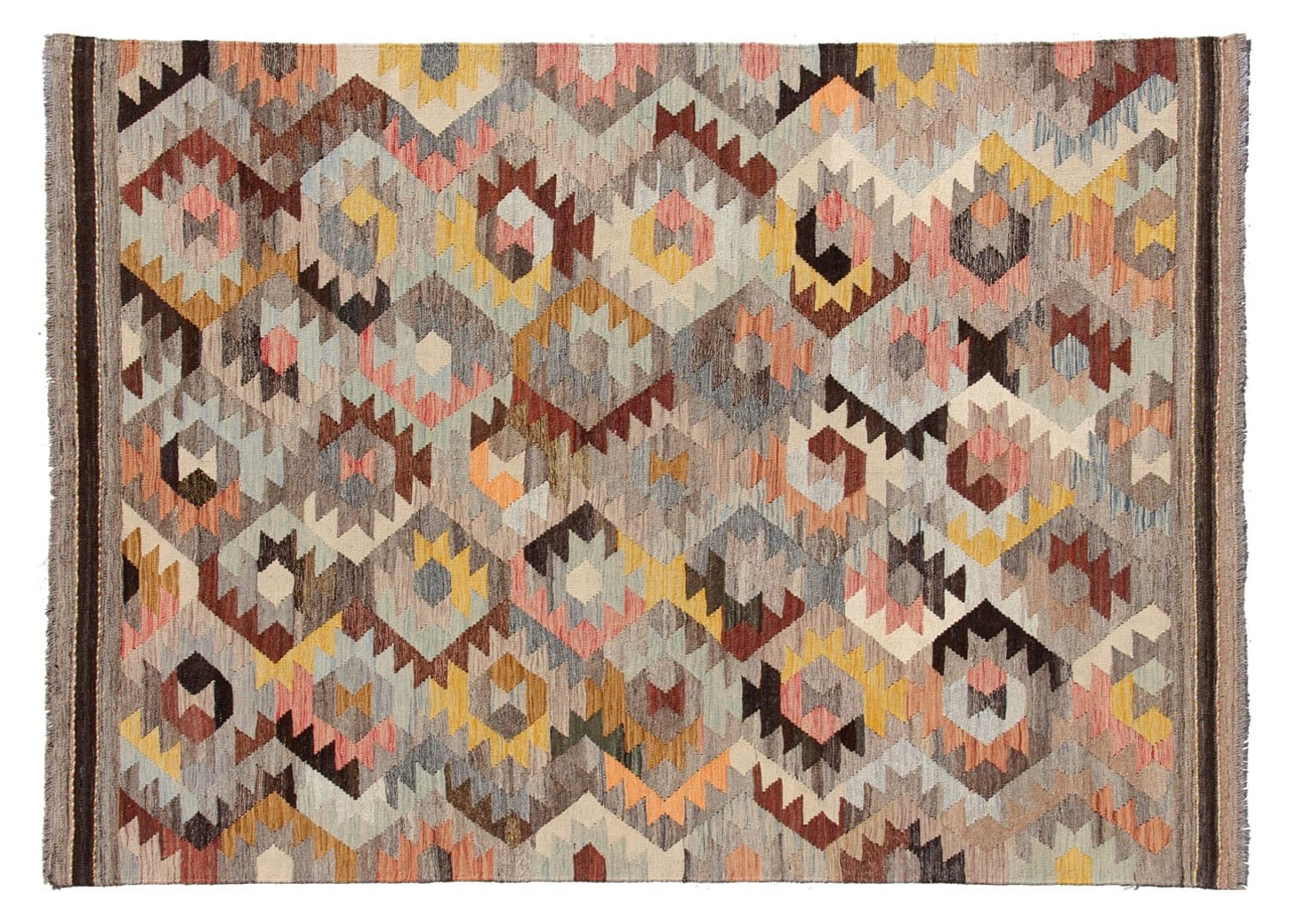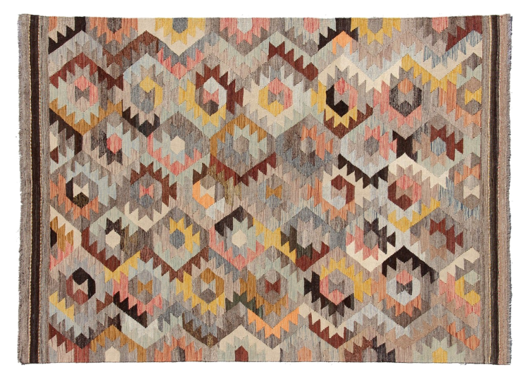 Denna handvävda kelim afghan är vacker tack vare de mångfacetterade färgerna och det typiska mönstret. Den var handvävd i Afghanistan av 100 % fårull. Den är utan tvekan mer robust och hållbar än maskintillverkade mattor. Dessutom har denna kelim en alldeles egen karaktär. En unik pjäs för dig och ditt hem som du aldrig kommer att hitta igen.