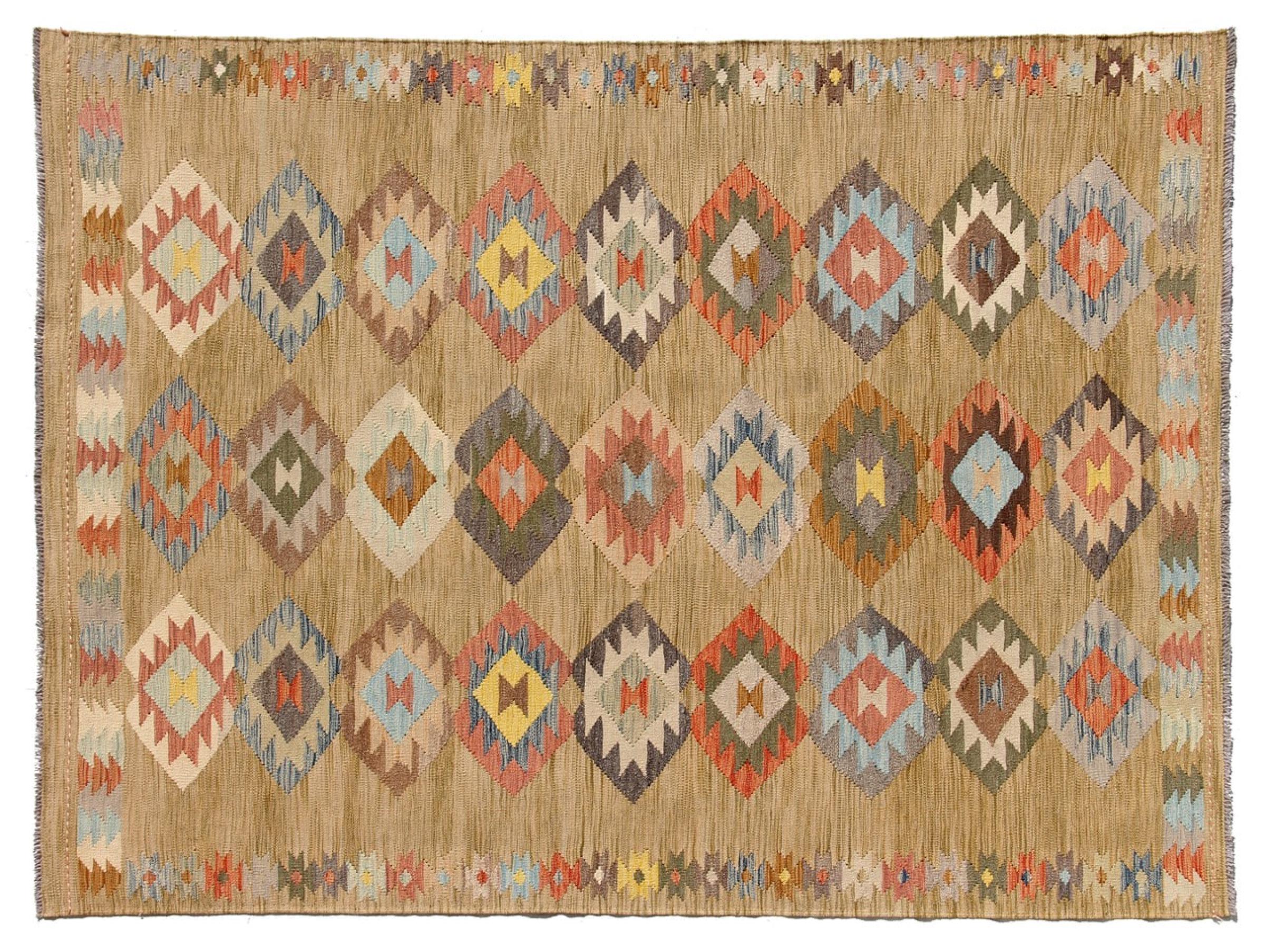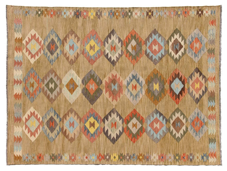 Denna handvävda kelim afghan är vacker tack vare de mångfacetterade färgerna och det typiska mönstret. Den var handvävd i Afghanistan av 100 % fårull. Den är utan tvekan mer robust och hållbar än maskintillverkade mattor. Dessutom har denna kelim en alldeles egen karaktär. En unik pjäs för dig och ditt hem som du aldrig kommer att hitta igen.