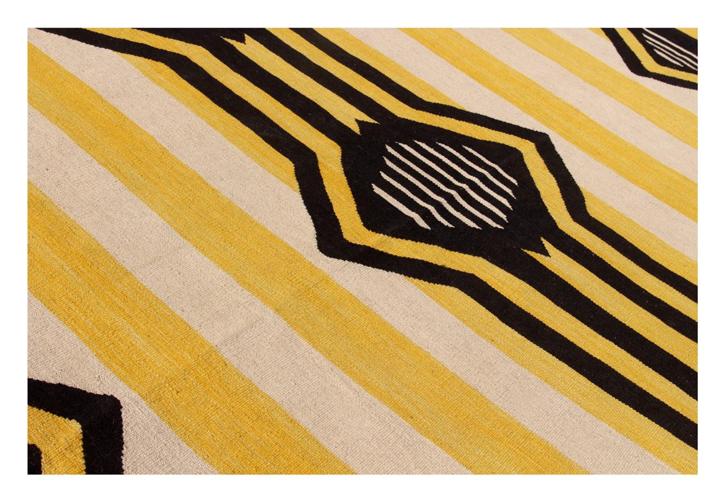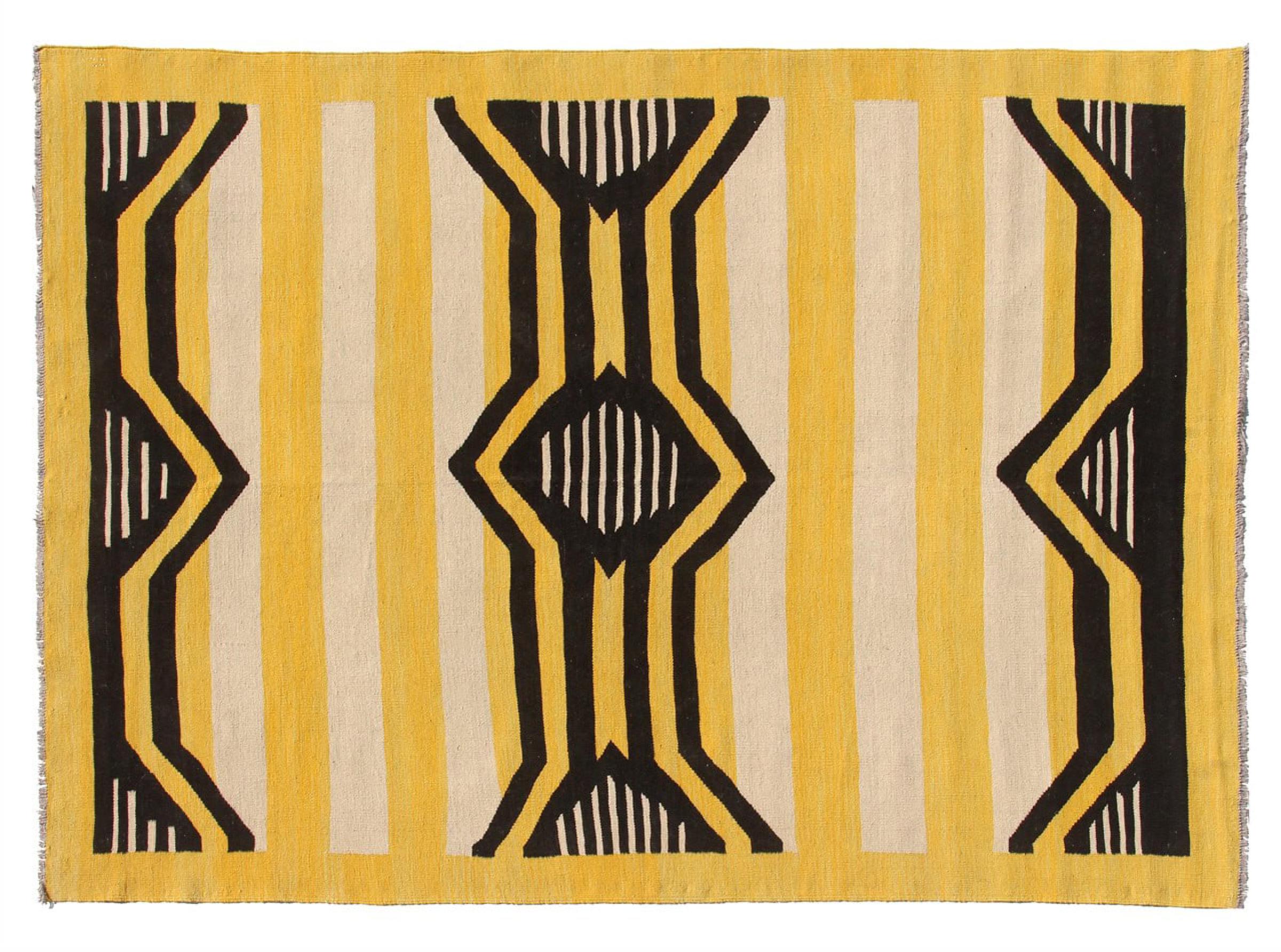 Denna matta tillverkas för hand på vävstolen som en platt väv. Flatweaves är mattor som inte har någon hög. Som namnet antyder är dessa mattor vävda och inte knutna. Detta resulterar i en platt matta med en strukturerad yta. Platta väver är inte så mjuka och mest tunnare än knutna mattor. Samtidigt är de betydligt mindre komplexa att tillverka och kan vanligtvis utformas från båda sidor (fram och bak). Deras mönster är vanligtvis geometriska, vilket beror på tyget.
