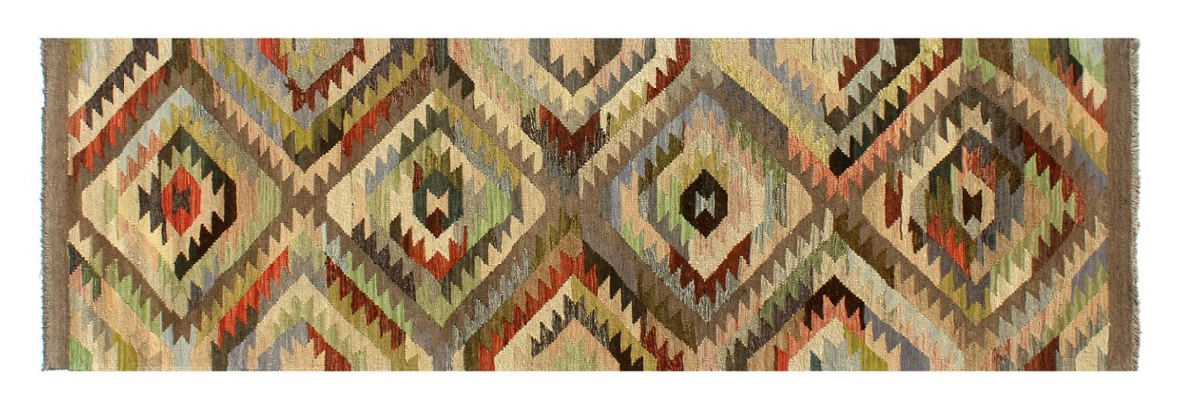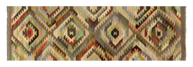 Denna handvävda kelim afghan är vacker tack vare de mångfacetterade färgerna och det typiska mönstret. Den var handvävd i Afghanistan av 100 % fårull. Den är utan tvekan mer robust och hållbar än maskintillverkade mattor. Dessutom har denna kelim en alldeles egen karaktär. En unik pjäs för dig och ditt hem som du aldrig kommer att hitta igen.