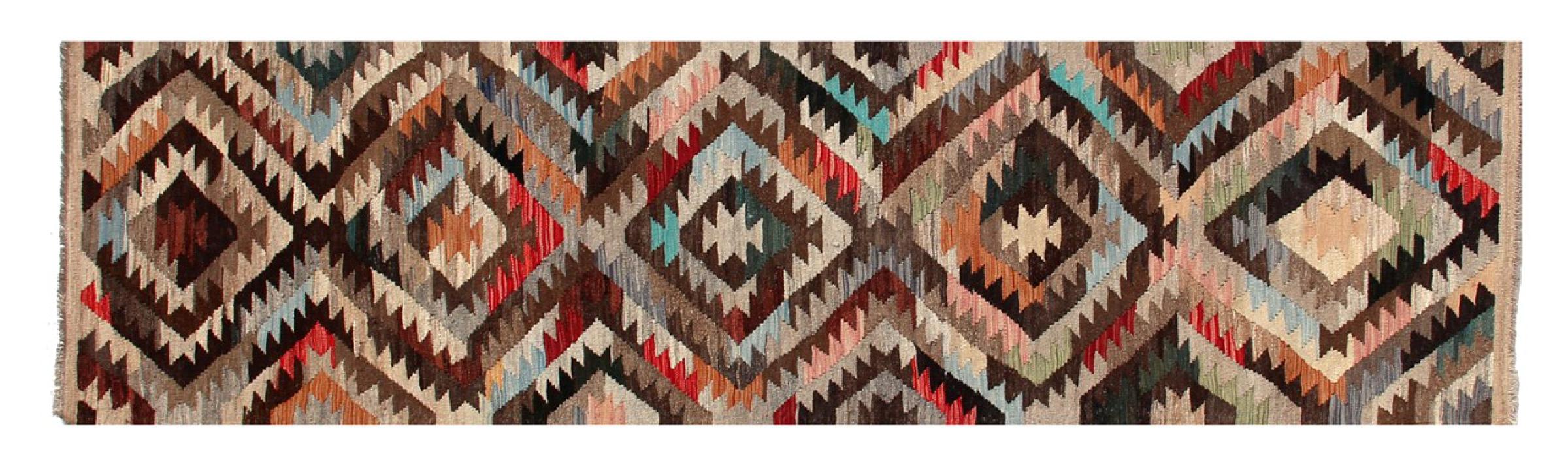 Denna handvävda kelim afghan är vacker tack vare de mångfacetterade färgerna och det typiska mönstret. Den var handvävd i Afghanistan av 100 % fårull. Den är utan tvekan mer robust och hållbar än maskintillverkade mattor. Dessutom har denna kelim en alldeles egen karaktär. En unik pjäs för dig och ditt hem som du aldrig kommer att hitta igen.