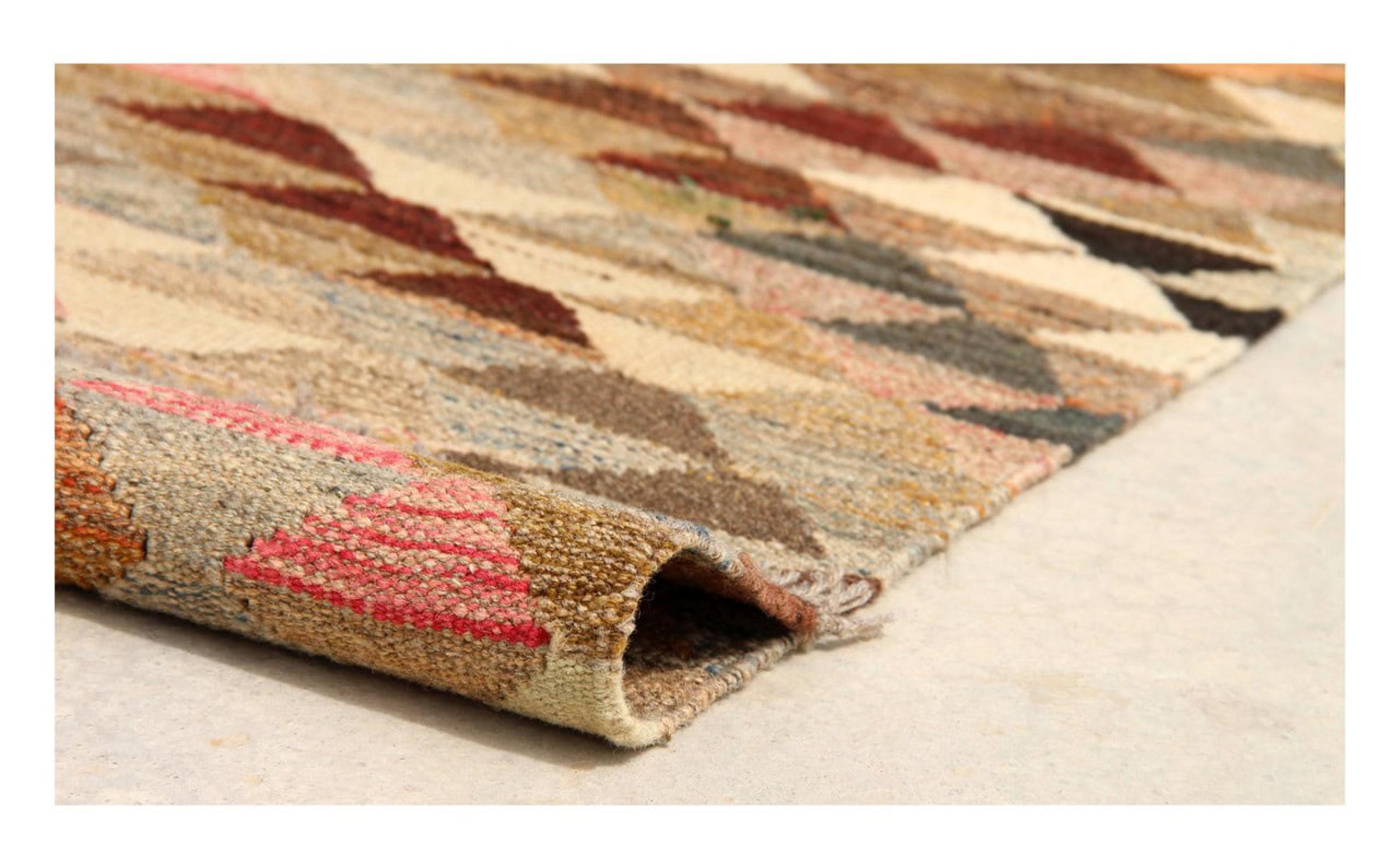 Denna matta tillverkas för hand på vävstolen som en platt väv. Flatweaves är mattor som inte har någon hög. Som namnet antyder är dessa mattor vävda och inte knutna. Detta resulterar i en platt matta med en strukturerad yta. Platta väver är inte så mjuka och mest tunnare än knutna mattor. Samtidigt är de betydligt mindre komplexa att tillverka och kan vanligtvis utformas från båda sidor (fram och bak). Deras mönster är vanligtvis geometriska, vilket beror på tyget.