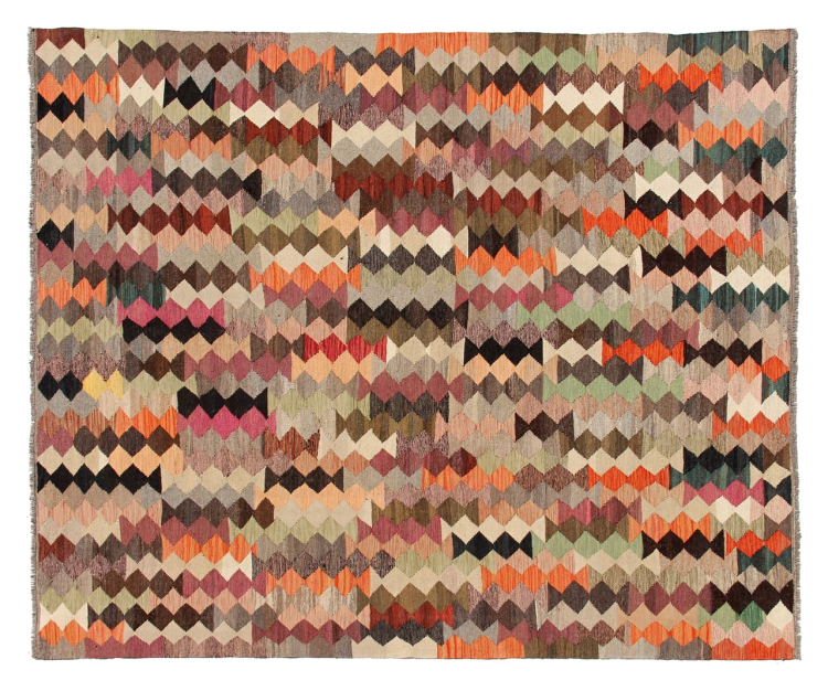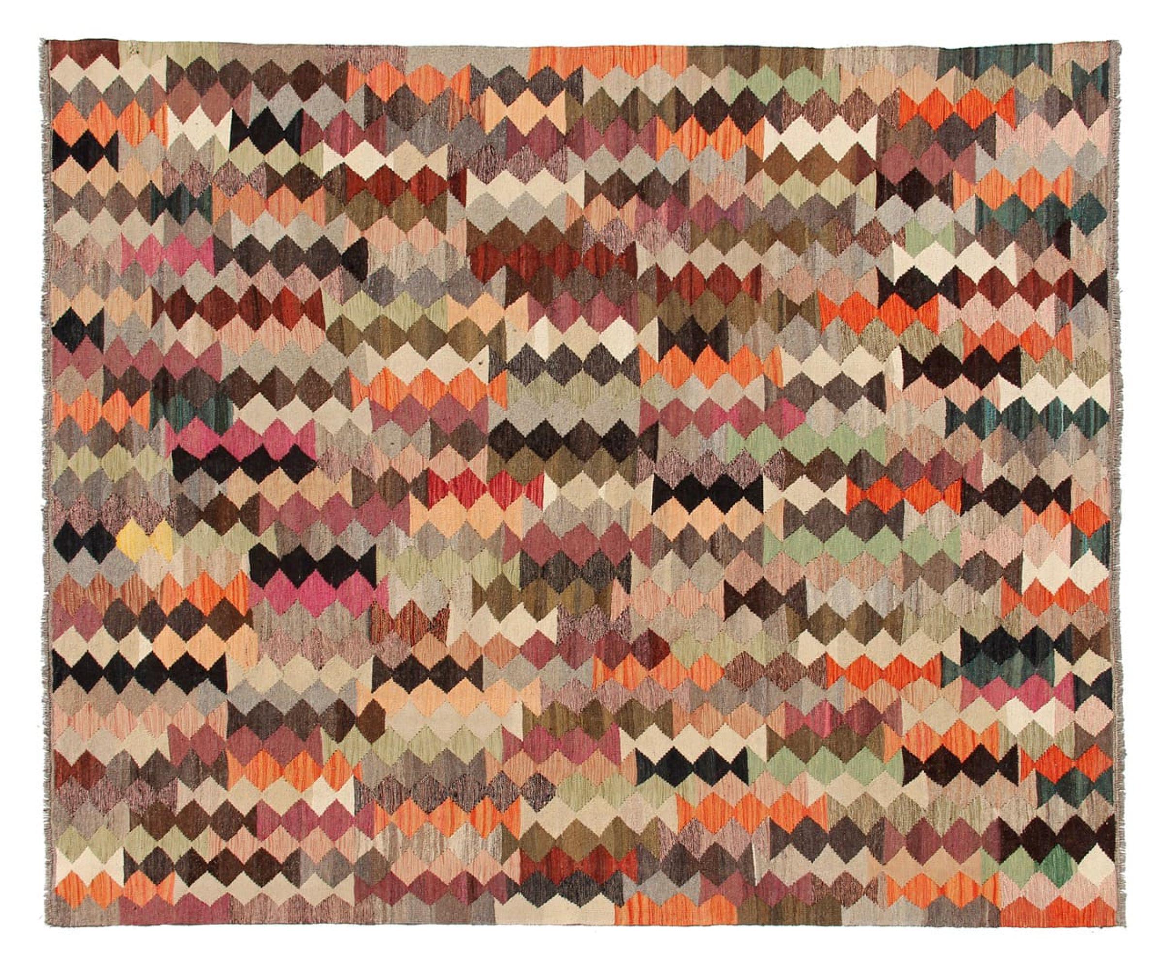 Denna handvävda kelim afghan är vacker tack vare de mångfacetterade färgerna och det typiska mönstret. Den var handvävd i Afghanistan av 100 % fårull. Den är utan tvekan mer robust och hållbar än maskintillverkade mattor. Dessutom har denna kelim en alldeles egen karaktär. En unik pjäs för dig och ditt hem som du aldrig kommer att hitta igen.