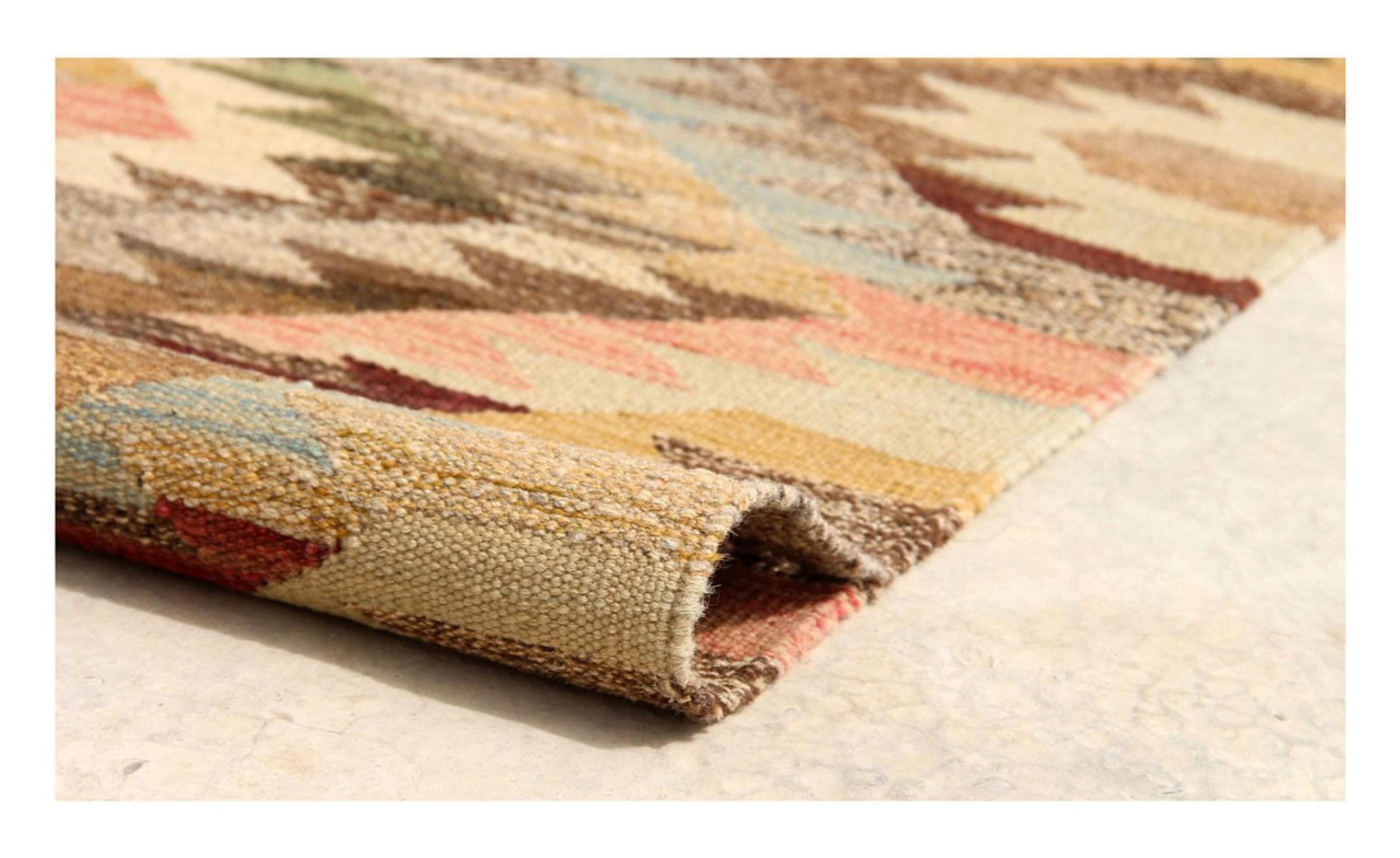 Denna matta tillverkas för hand på vävstolen som en platt väv. Flatweaves är mattor som inte har någon hög. Som namnet antyder är dessa mattor vävda och inte knutna. Detta resulterar i en platt matta med en strukturerad yta. Platta väver är inte så mjuka och mest tunnare än knutna mattor. Samtidigt är de betydligt mindre komplexa att tillverka och kan vanligtvis utformas från båda sidor (fram och bak). Deras mönster är vanligtvis geometriska, vilket beror på tyget.