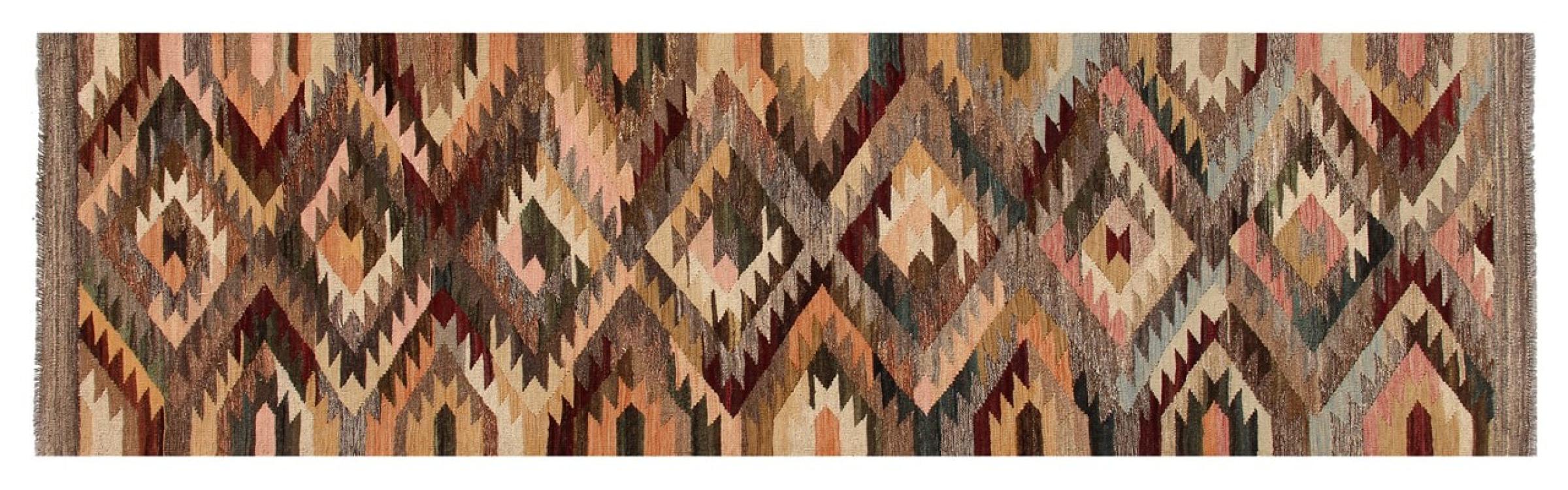 Denna handvävda kelim afghan är vacker tack vare de mångfacetterade färgerna och det typiska mönstret. Den var handvävd i Afghanistan av 100 % fårull. Den är utan tvekan mer robust och hållbar än maskintillverkade mattor. Dessutom har denna kelim en alldeles egen karaktär. En unik pjäs för dig och ditt hem som du aldrig kommer att hitta igen.