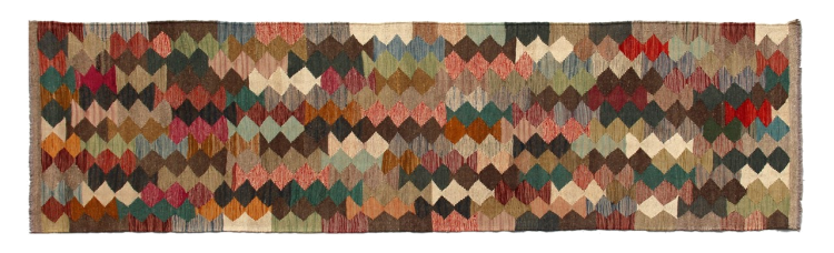 Denna handvävda kelim afghan är vacker tack vare de mångfacetterade färgerna och det typiska mönstret. Den var handvävd i Afghanistan av 100 % fårull. Den är utan tvekan mer robust och hållbar än maskintillverkade mattor. Dessutom har denna kelim en alldeles egen karaktär. En unik pjäs för dig och ditt hem som du aldrig kommer att hitta igen.
