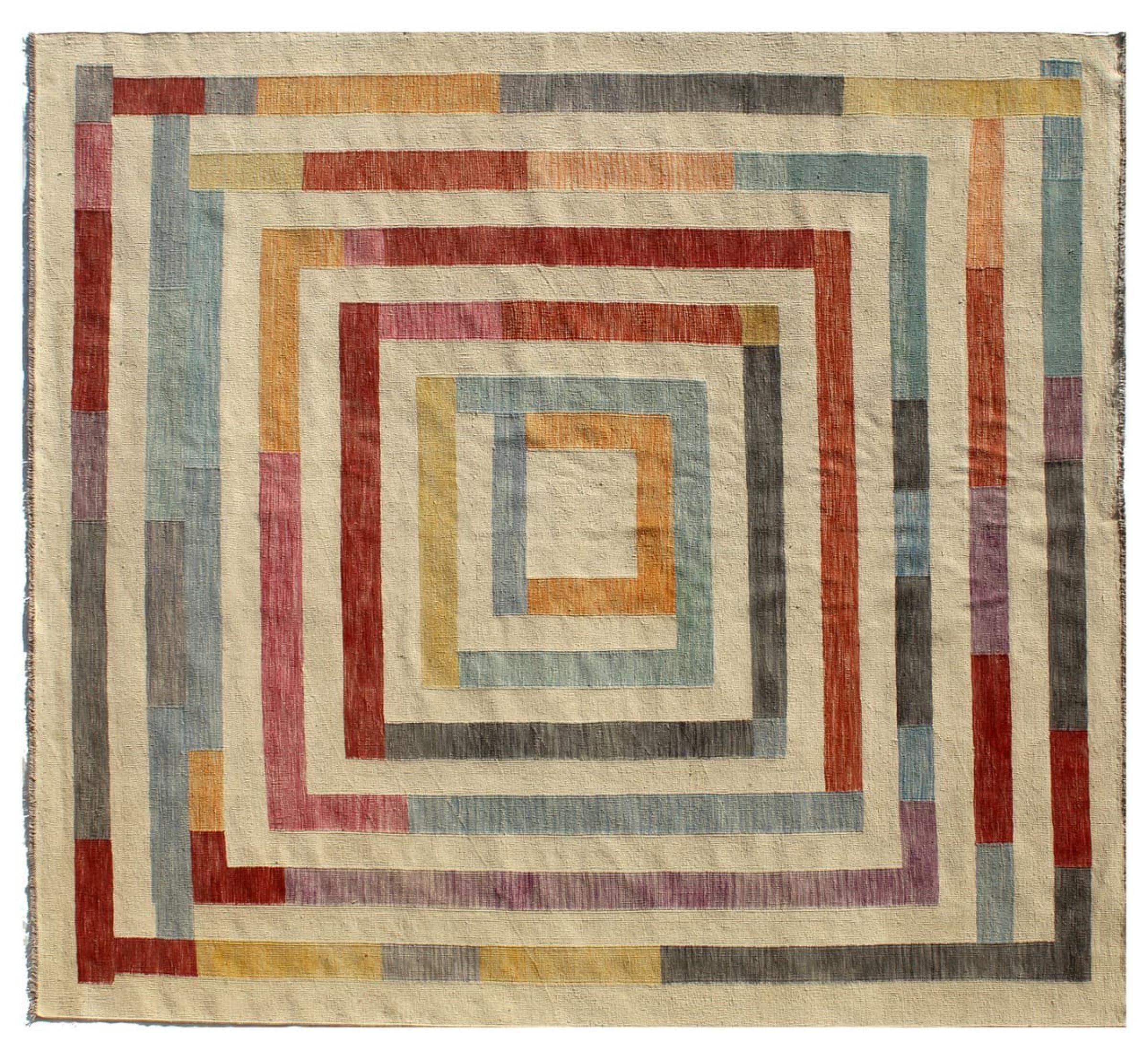 Denna matta tillverkas för hand på vävstolen som en platt väv. Flatweaves är mattor som inte har någon hög. Som namnet antyder är dessa mattor vävda och inte knutna. Detta resulterar i en platt matta med en strukturerad yta. Platta väver är inte så mjuka och mest tunnare än knutna mattor. Samtidigt är de betydligt mindre komplexa att tillverka och kan vanligtvis utformas från båda sidor (fram och bak). Deras mönster är vanligtvis geometriska, vilket beror på tyget.