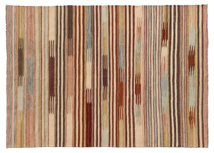 Dessa kilim Mattor har en avgörande skillnad till handknutna mattor - de är vävda för hand. De har inte en högkvalitativ hög med ull och är ofta plattare och grovare än knutade ullsmattor. Deras design är mindre komplex och därför är de vanligtvis mycket billigare. En annan fördel är att kilim mattor är mycket lättare och kan läggas ut framifrån och bakifrån. Handvävda kilims kommer ursprungligen från det tidigare Persien och tillverkas nu också mycket i Afghanistan. De har ganska enkla, okomplicerade mönster som beror på deras vävningsteknik.