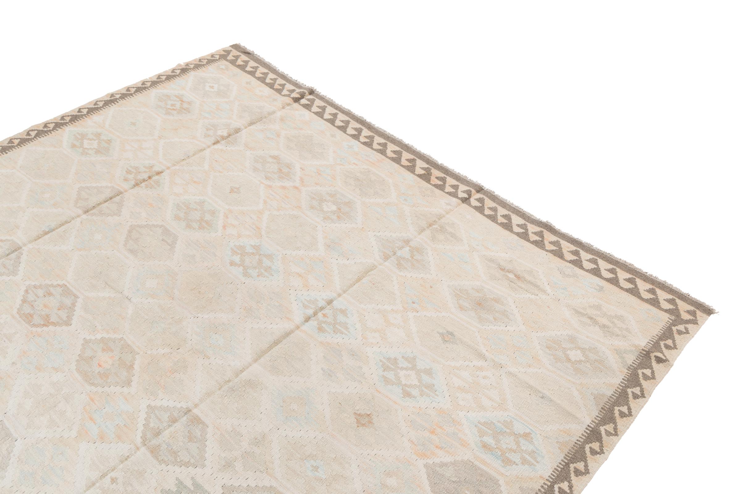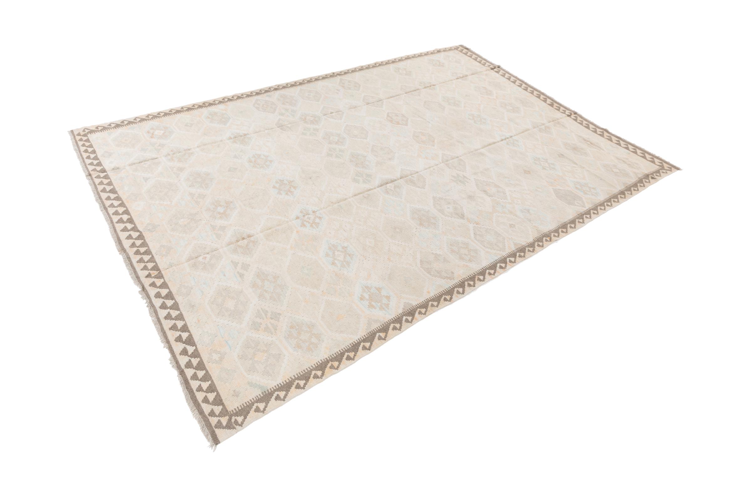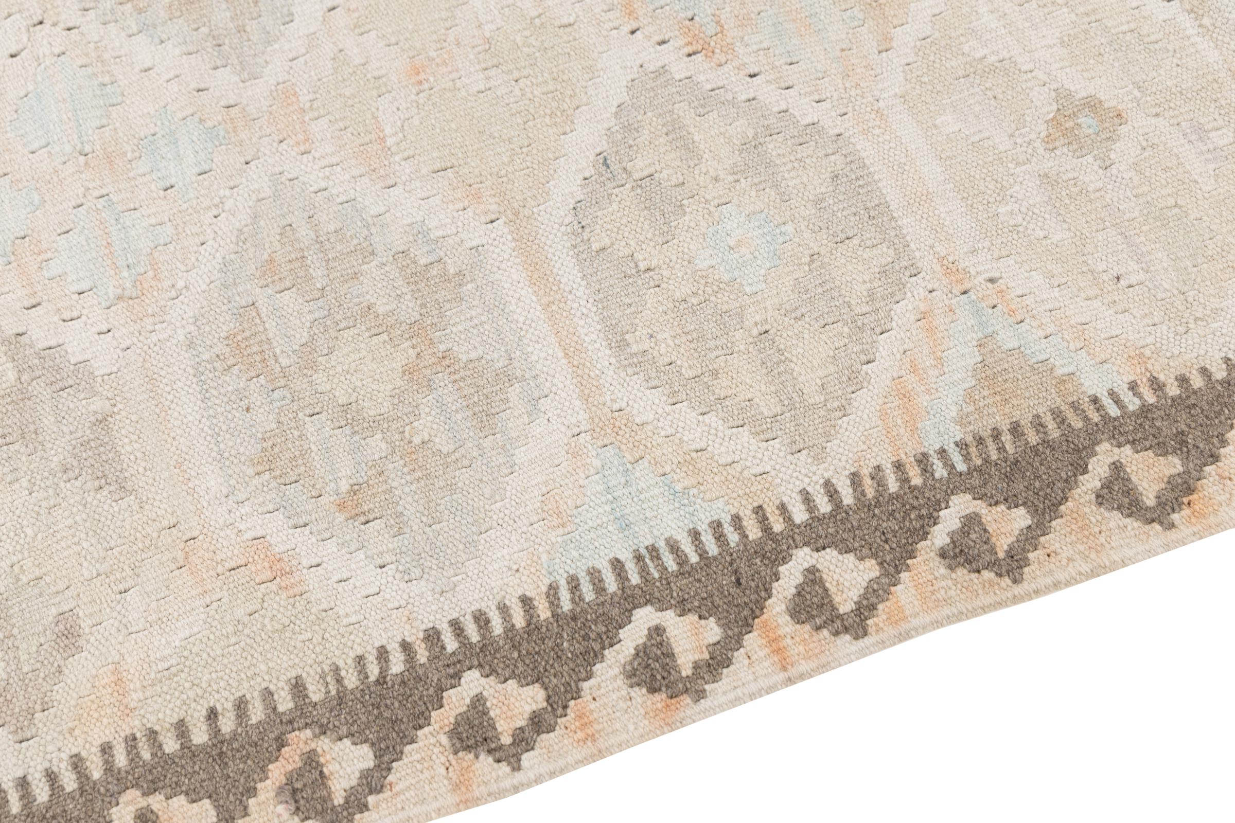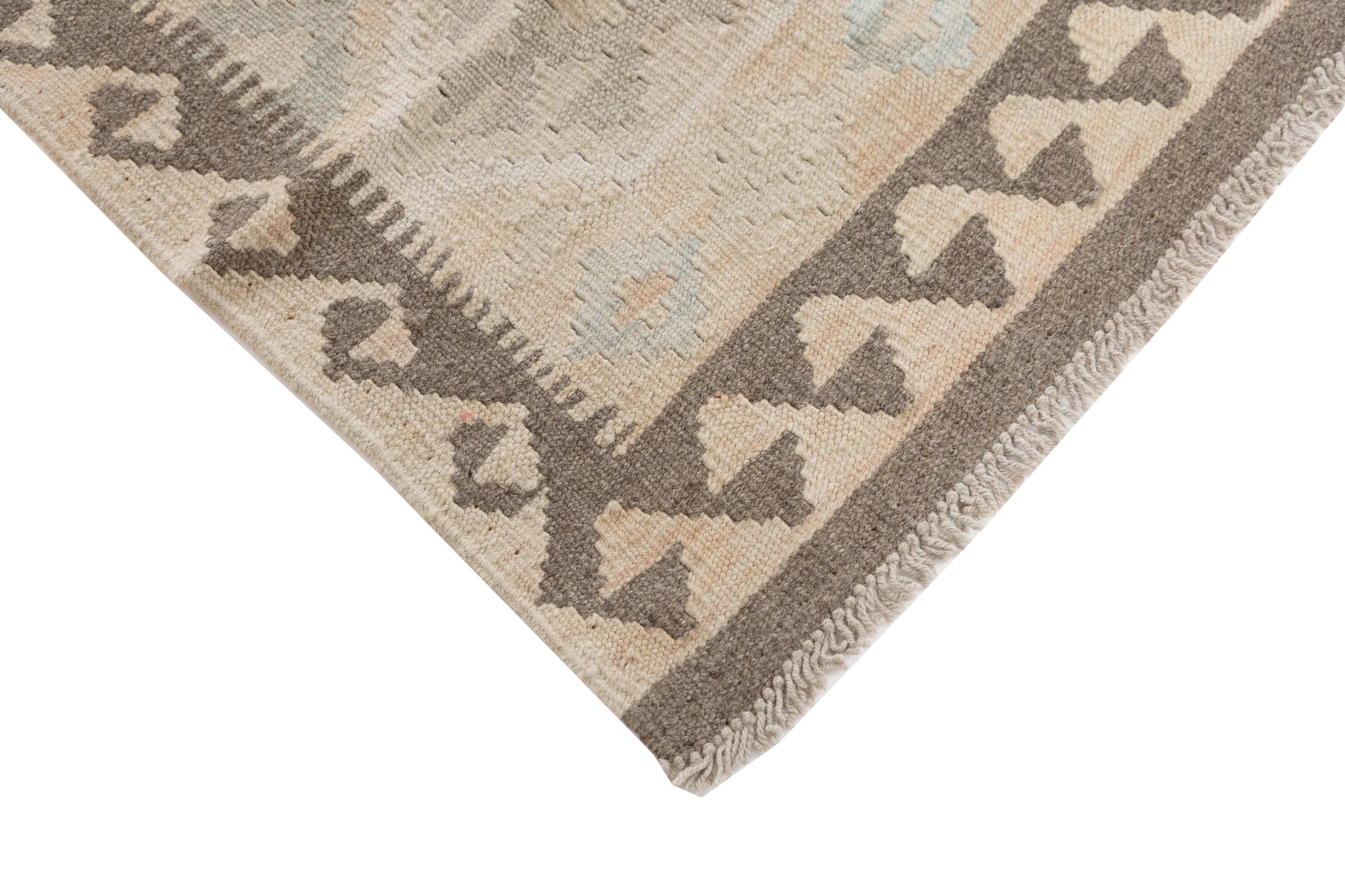 Denna kelimmatta är väldigt speciell eftersom den inte bara är vävd för hand, utan dess ull är också handspunnen. Kilim Heritage-kollektionen erbjuder en högmodern design i pastellfärger och i kombination med det mest traditionella hantverket från Orienten. Stort värde och helt överkomligt. Du kommer inte att hitta ett unikt föremål som detta igen.