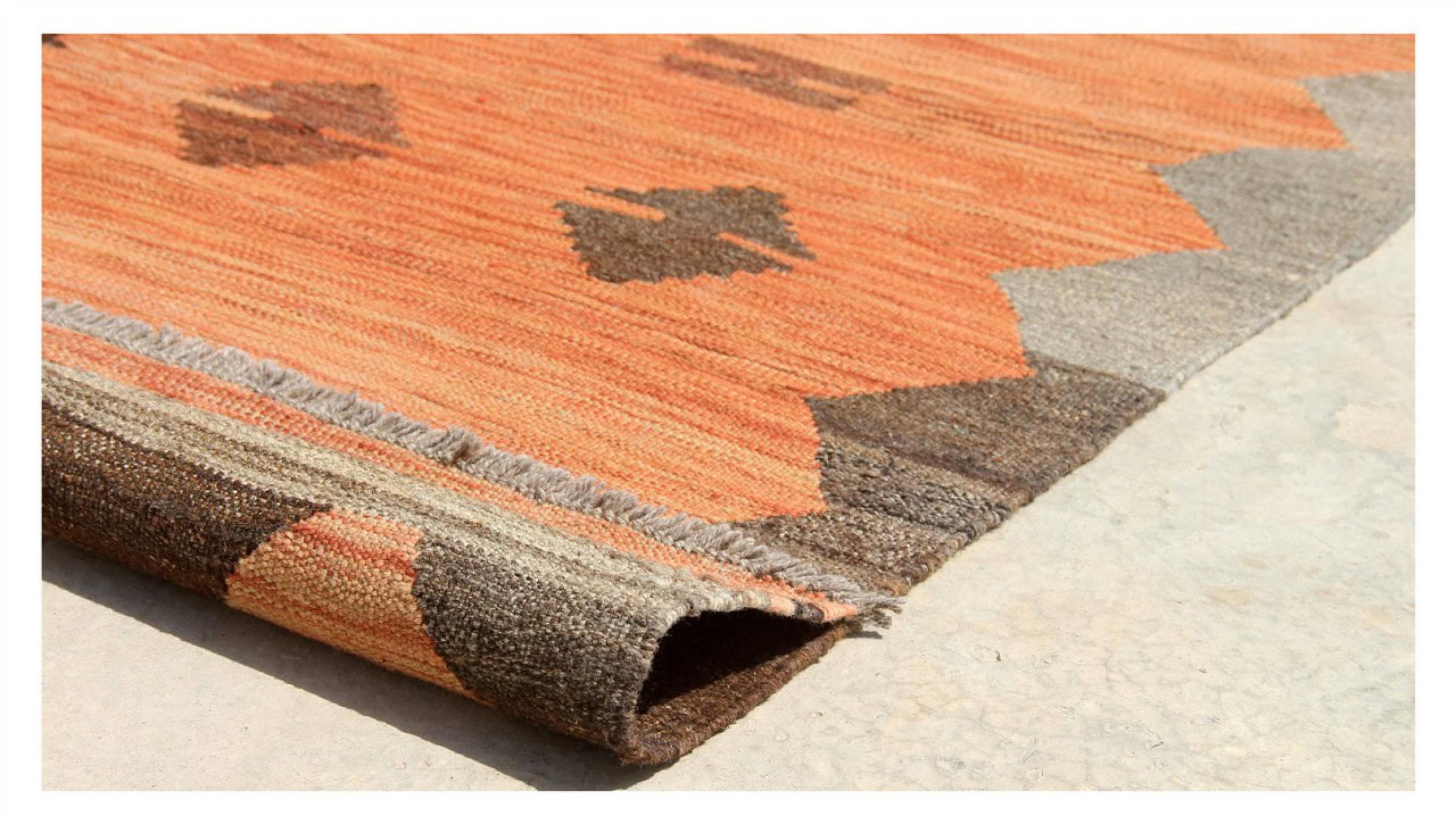 Denna matta tillverkas för hand på vävstolen som en platt väv. Flatweaves är mattor som inte har någon hög. Som namnet antyder är dessa mattor vävda och inte knutna. Detta resulterar i en platt matta med en strukturerad yta. Platta väver är inte så mjuka och mest tunnare än knutna mattor. Samtidigt är de betydligt mindre komplexa att tillverka och kan vanligtvis utformas från båda sidor (fram och bak). Deras mönster är vanligtvis geometriska, vilket beror på tyget.