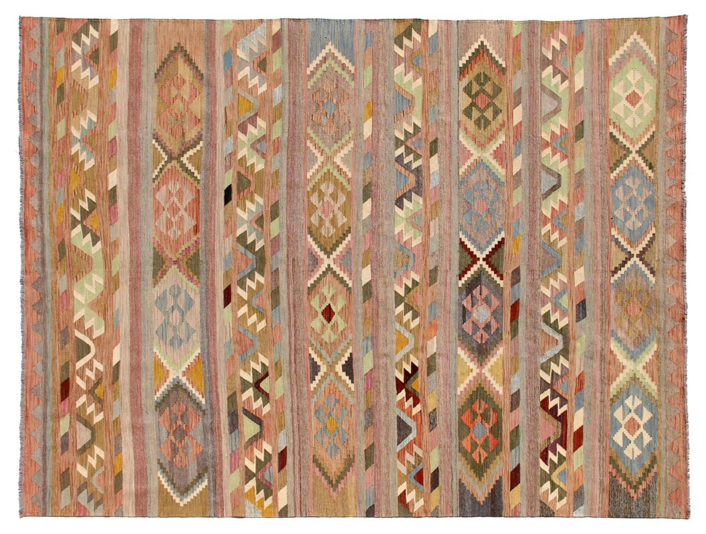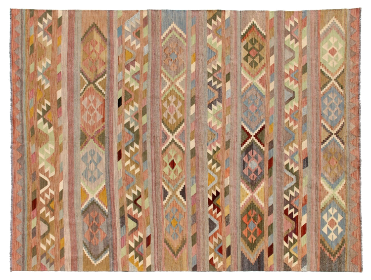 Denna handvävda kelim afghan är vacker tack vare de mångfacetterade färgerna och det typiska mönstret. Den var handvävd i Afghanistan av 100 % fårull. Den är utan tvekan mer robust och hållbar än maskintillverkade mattor. Dessutom har denna kelim en alldeles egen karaktär. En unik pjäs för dig och ditt hem som du aldrig kommer att hitta igen.