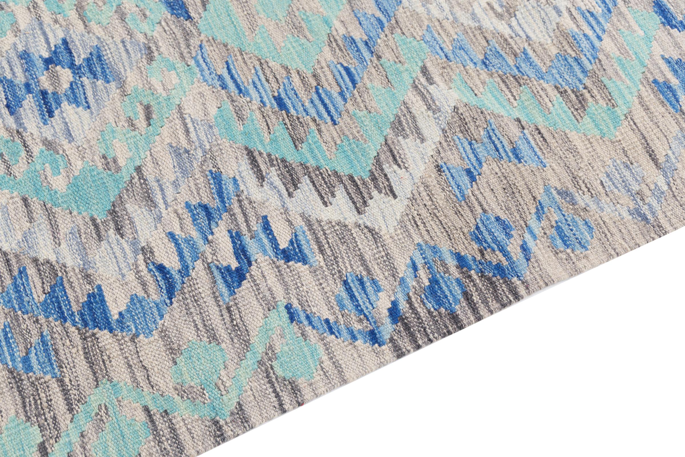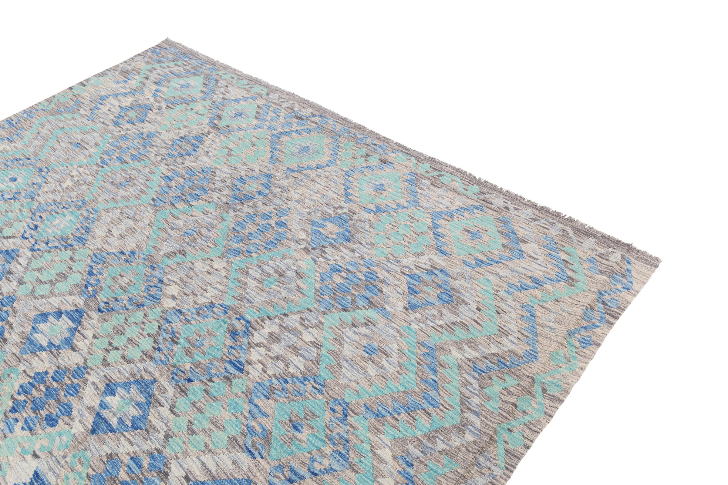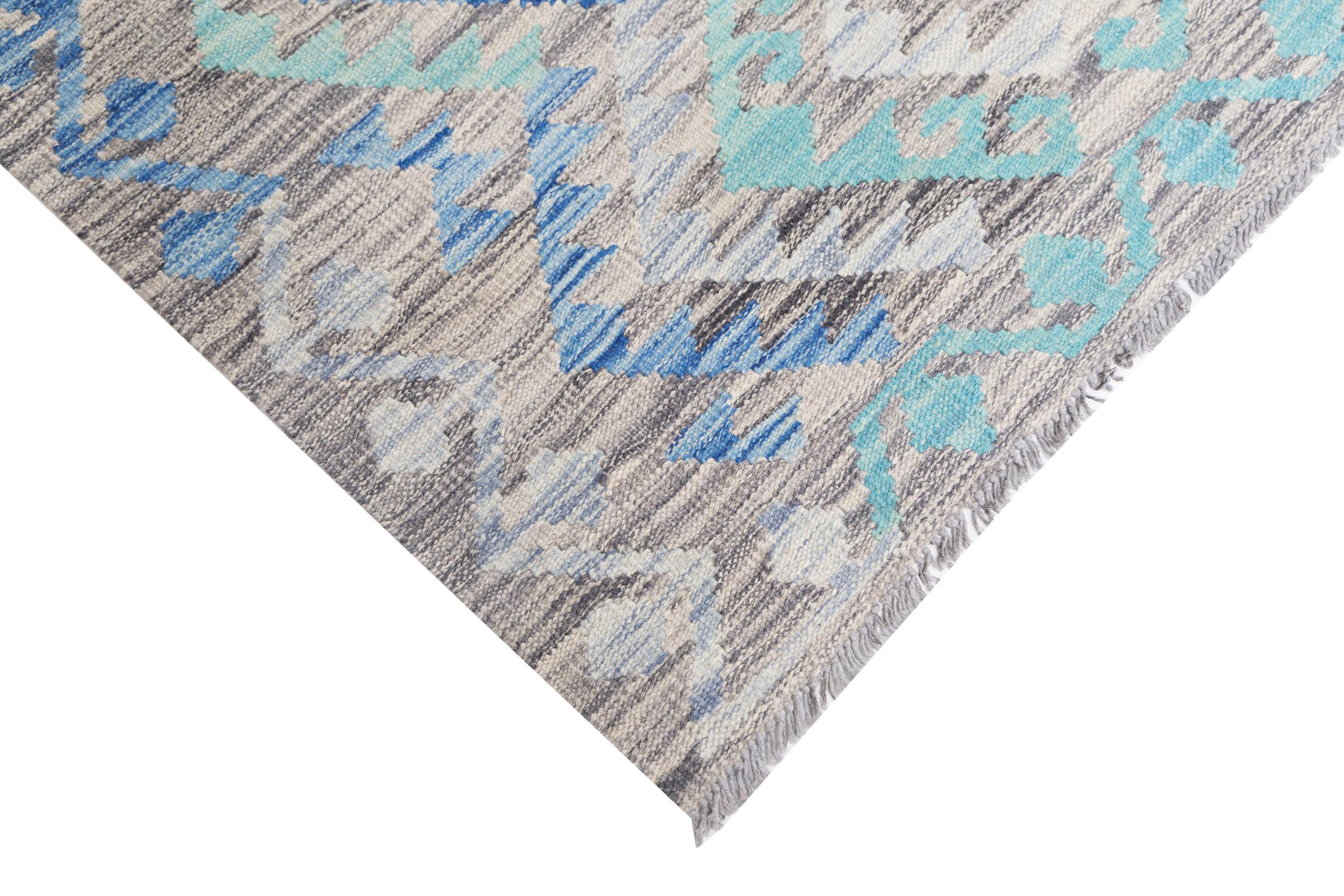 Denna kelimmatta är väldigt speciell eftersom den inte bara är vävd för hand, utan dess ull är också handspunnen. Kilim Heritage-kollektionen erbjuder en högmodern design i pastellfärger och i kombination med det mest traditionella hantverket från Orienten. Stort värde och helt överkomligt. Du kommer inte att hitta ett unikt föremål som detta igen.