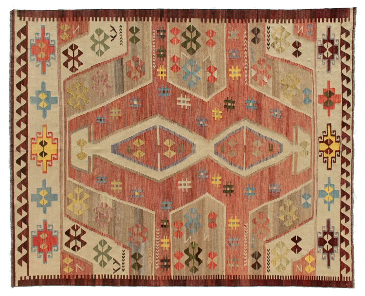 Denna matta tillverkas för hand på vävstolen som en platt väv. Flatweaves är mattor som inte har någon hög. Som namnet antyder är dessa mattor vävda och inte knutna. Detta resulterar i en platt matta med en strukturerad yta. Platta väver är inte så mjuka och mest tunnare än knutna mattor. Samtidigt är de betydligt mindre komplexa att tillverka och kan vanligtvis utformas från båda sidor (fram och bak). Deras mönster är vanligtvis geometriska, vilket beror på tyget.