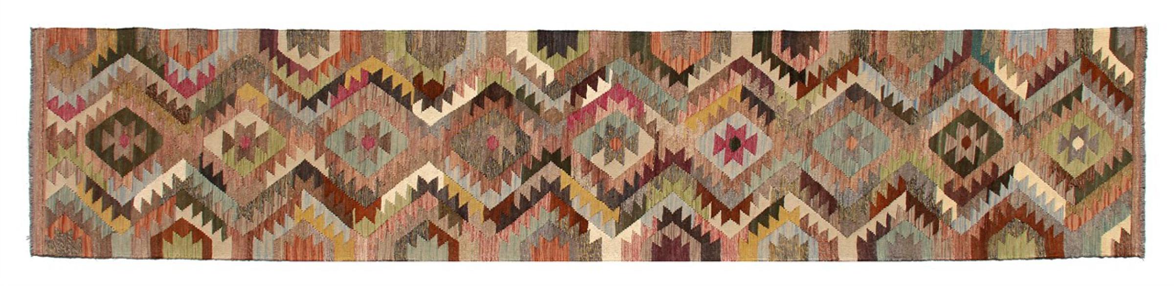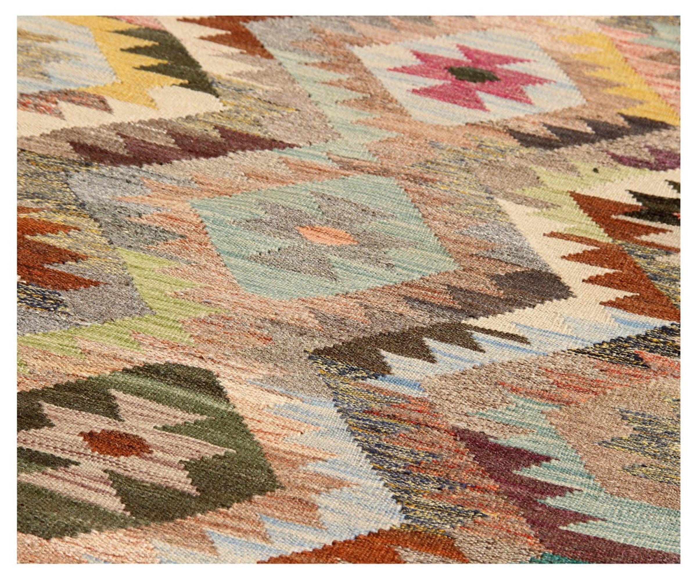 Denna handvävda kelim afghan är vacker tack vare de mångfacetterade färgerna och det typiska mönstret. Den var handvävd i Afghanistan av 100 % fårull. Den är utan tvekan mer robust och hållbar än maskintillverkade mattor. Dessutom har denna kelim en alldeles egen karaktär. En unik pjäs för dig och ditt hem som du aldrig kommer att hitta igen.