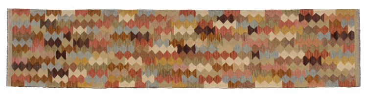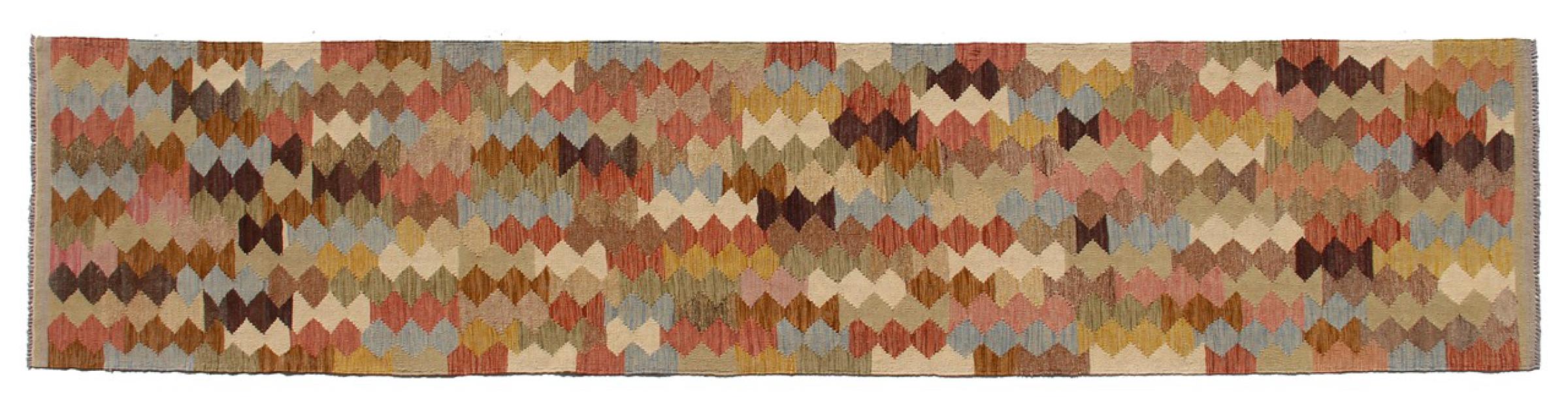 Denna handvävda kelim afghan är vacker tack vare de mångfacetterade färgerna och det typiska mönstret. Den var handvävd i Afghanistan av 100 % fårull. Den är utan tvekan mer robust och hållbar än maskintillverkade mattor. Dessutom har denna kelim en alldeles egen karaktär. En unik pjäs för dig och ditt hem som du aldrig kommer att hitta igen.