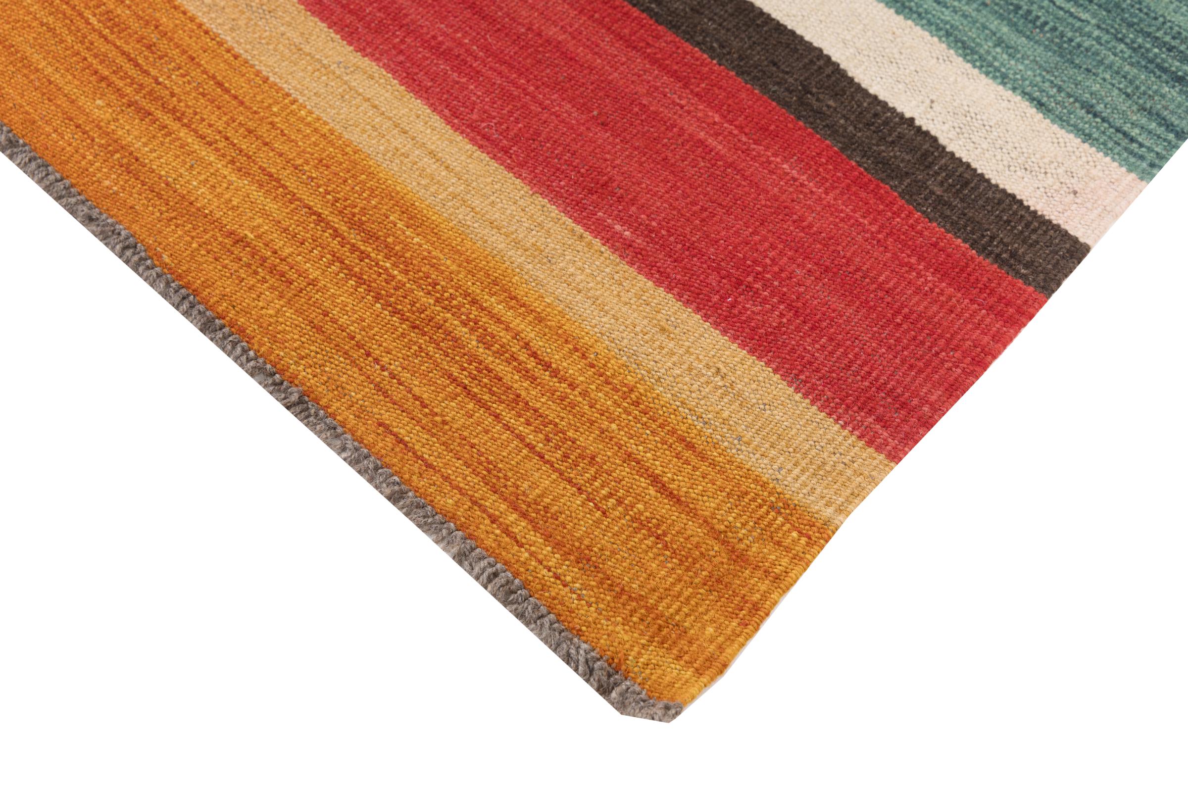 Denna kelimmatta är väldigt speciell eftersom den inte bara är vävd för hand, utan dess ull är också handspunnen. Kilim Heritage-kollektionen erbjuder en högmodern design i pastellfärger och i kombination med det mest traditionella hantverket från Orienten. Stort värde och helt överkomligt. Du kommer inte att hitta ett unikt föremål som detta igen.