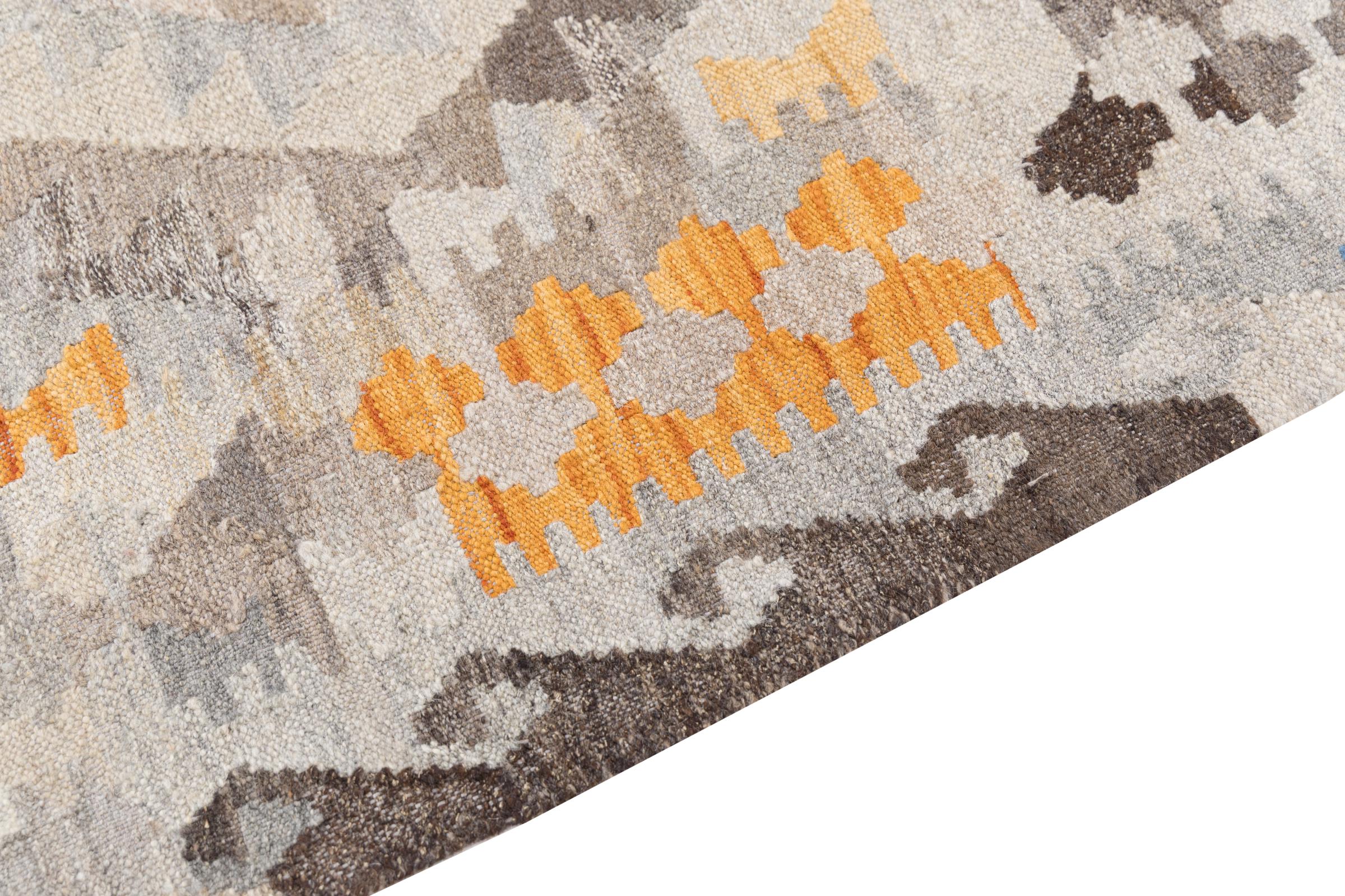 Denna kelimmatta är väldigt speciell eftersom den inte bara är vävd för hand, utan dess ull är också handspunnen. Kilim Heritage-kollektionen erbjuder en högmodern design i pastellfärger och i kombination med det mest traditionella hantverket från Orienten. Stort värde och helt överkomligt. Du kommer inte att hitta ett unikt föremål som detta igen.