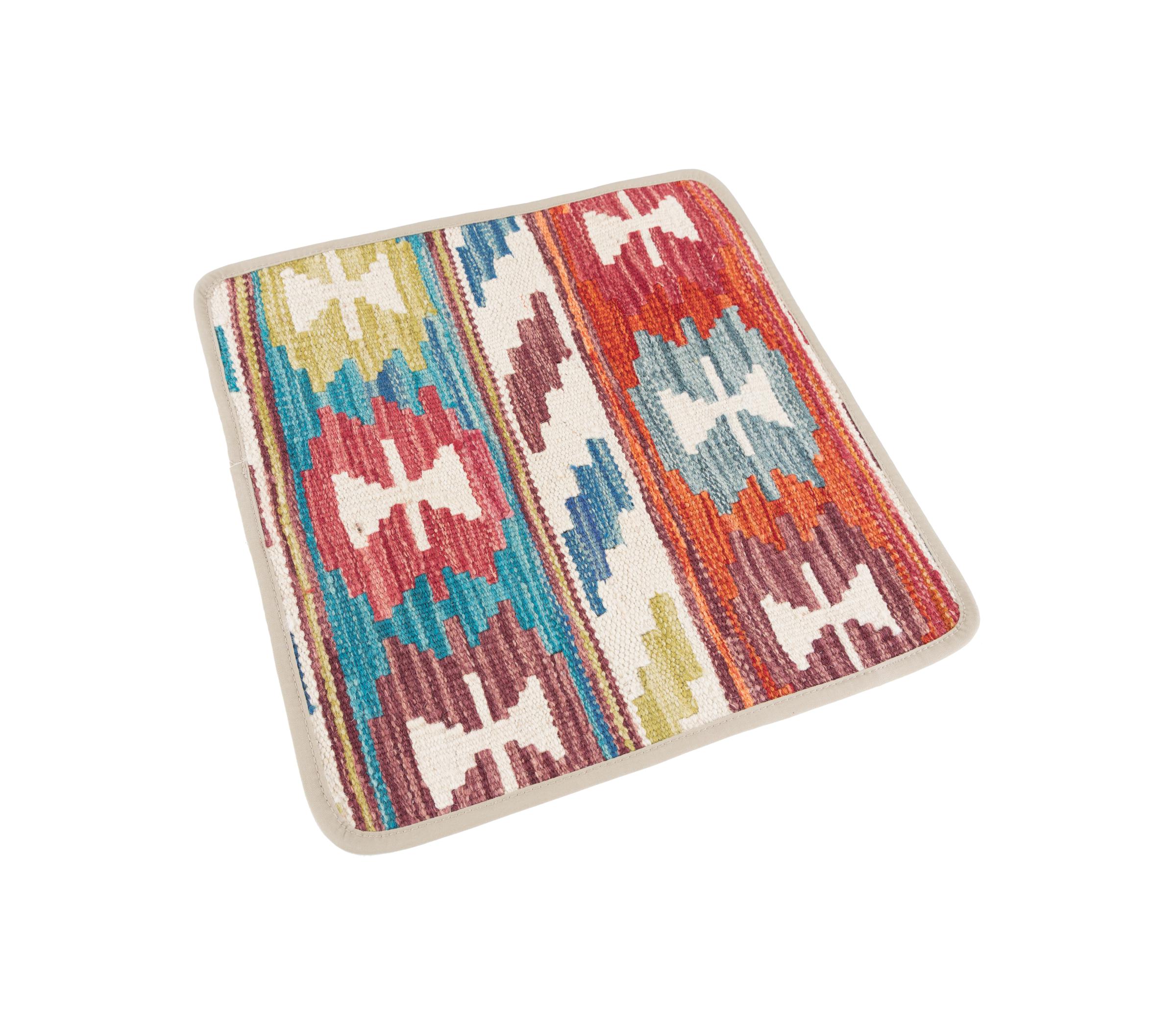 Mattans ID: 289548001043 Storlek: 40x40 cm Tjocklek: ap. 3 mm Tillverkning: Knuten för hand Lugg: Handspunnen ull Varp: Ull Ursprung: Afghanistan Ålder: Ny Vikt: ap. 0 kg I lager: Unik - Endast 1 i lager
