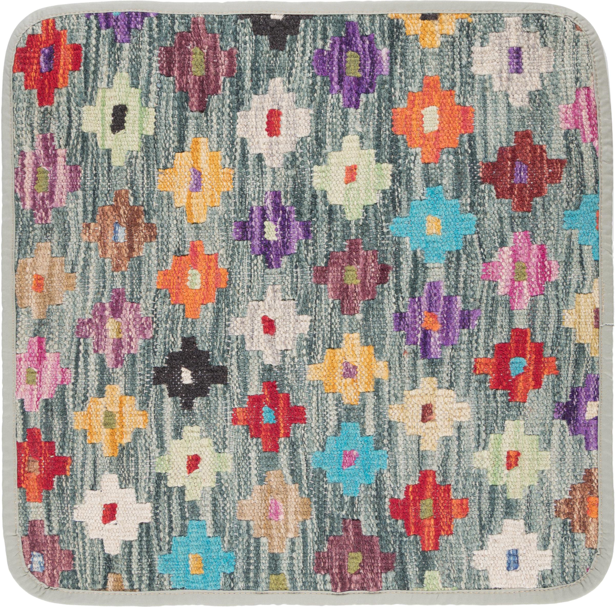 Mattans ID: 289965001460 Storlek: 45x45 cm Tjocklek: ap. 3 mm Tillverkning: Knuten för hand Lugg: Handspunnen ull Varp: Ull Ursprung: Afghanistan Ålder: Ny Vikt: ap. 0 kg I lager: Unik - Endast 1 i lager