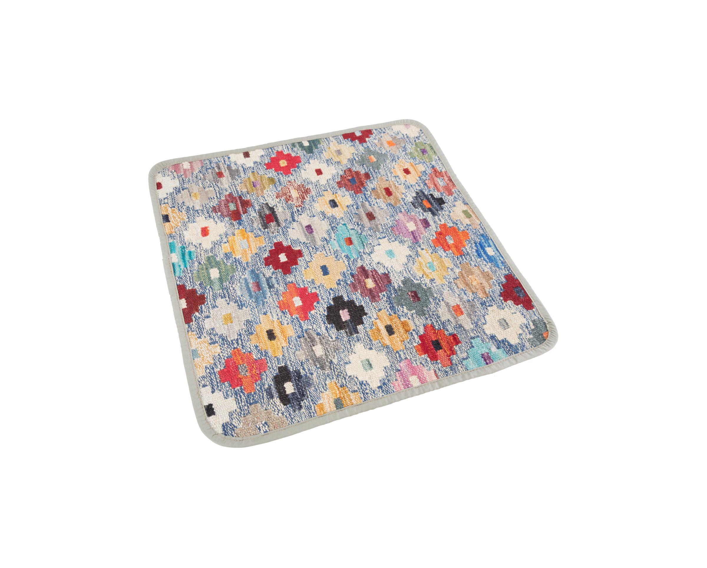 Mattans ID: 289977001472 Storlek: 45x45 cm Tjocklek: ap. 3 mm Tillverkning: Knuten för hand Lugg: Handspunnen ull Varp: Ull Ursprung: Afghanistan Ålder: Ny Vikt: ap. 0 kg I lager: Unik - Endast 1 i lager