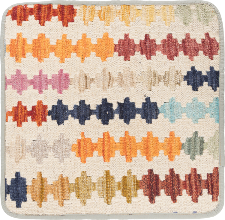 Mattans ID: 290065001560 Storlek: 45x45 cm Tjocklek: ap. 3 mm Tillverkning: Knuten för hand Lugg: Handspunnen ull Varp: Ull Ursprung: Afghanistan Ålder: Ny Vikt: ap. 0 kg I lager: Unik - Endast 1 i lager