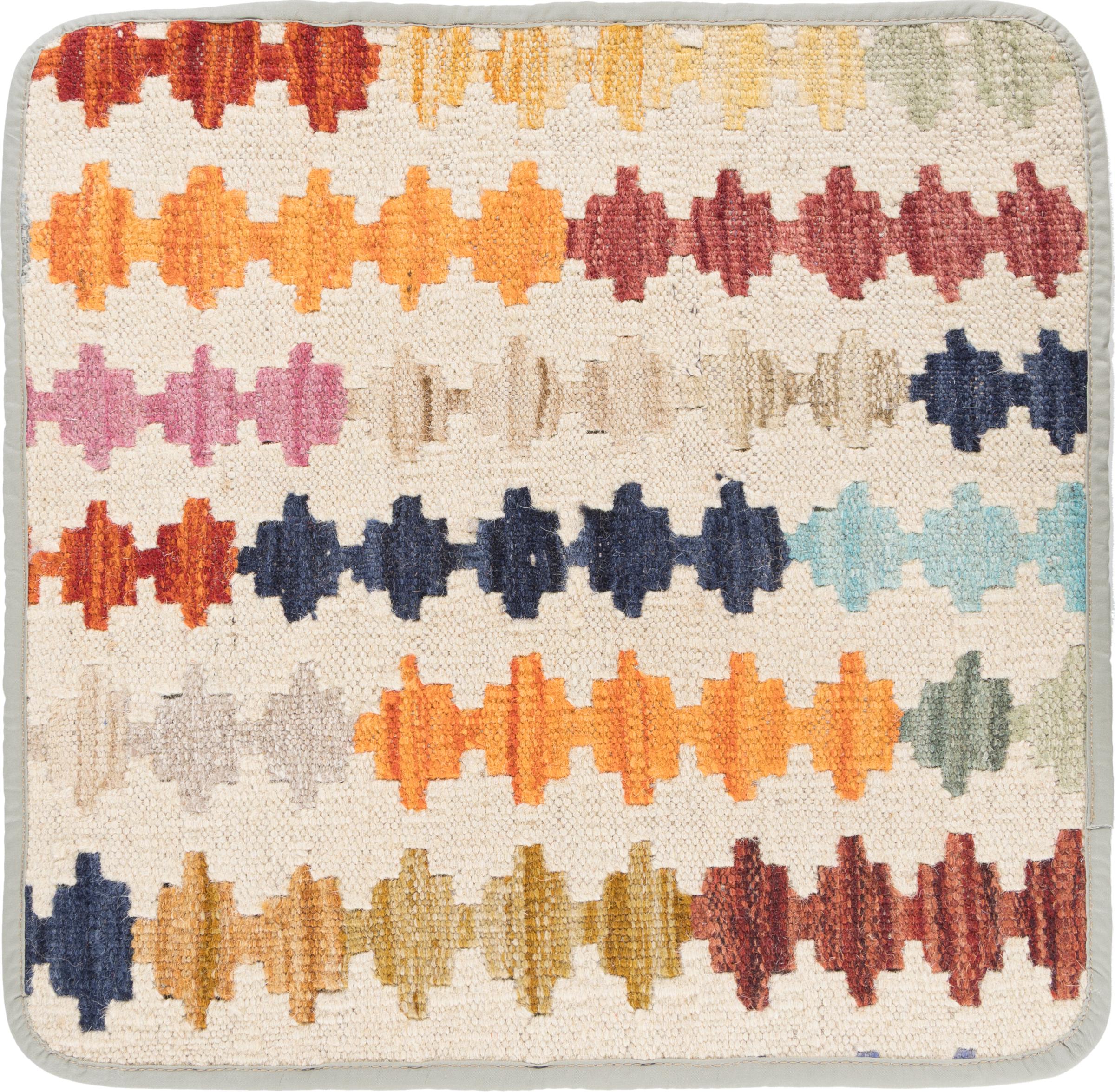Denna handvävda kelim afghan är vacker tack vare de mångfacetterade färgerna och det typiska mönstret. Den var handvävd i Afghanistan av 100 % fårull. Den är utan tvekan mer robust och hållbar än maskintillverkade mattor. Dessutom har denna kelim en alldeles egen karaktär. En unik pjäs för dig och ditt hem som du aldrig kommer att hitta igen.