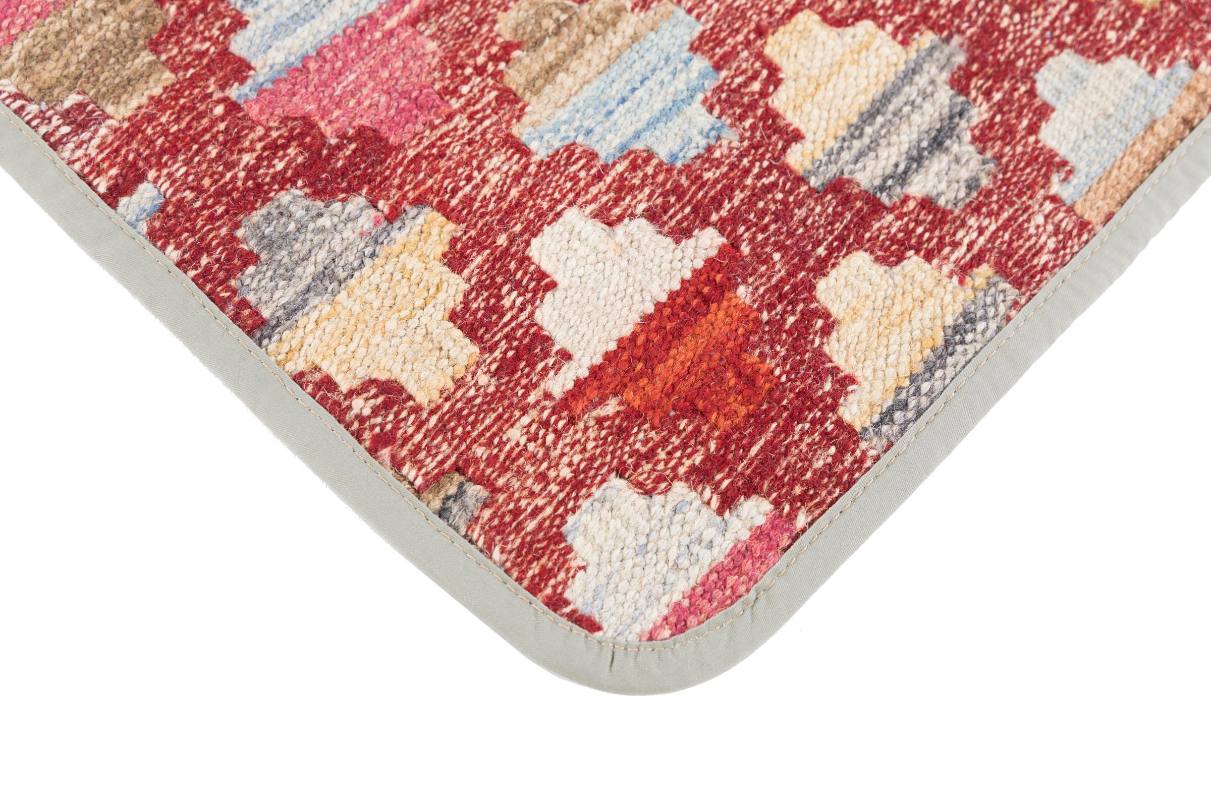 Denna handvävda kelim afghan är vacker tack vare de mångfacetterade färgerna och det typiska mönstret. Den var handvävd i Afghanistan av 100 % fårull. Den är utan tvekan mer robust och hållbar än maskintillverkade mattor. Dessutom har denna kelim en alldeles egen karaktär. En unik pjäs för dig och ditt hem som du aldrig kommer att hitta igen.