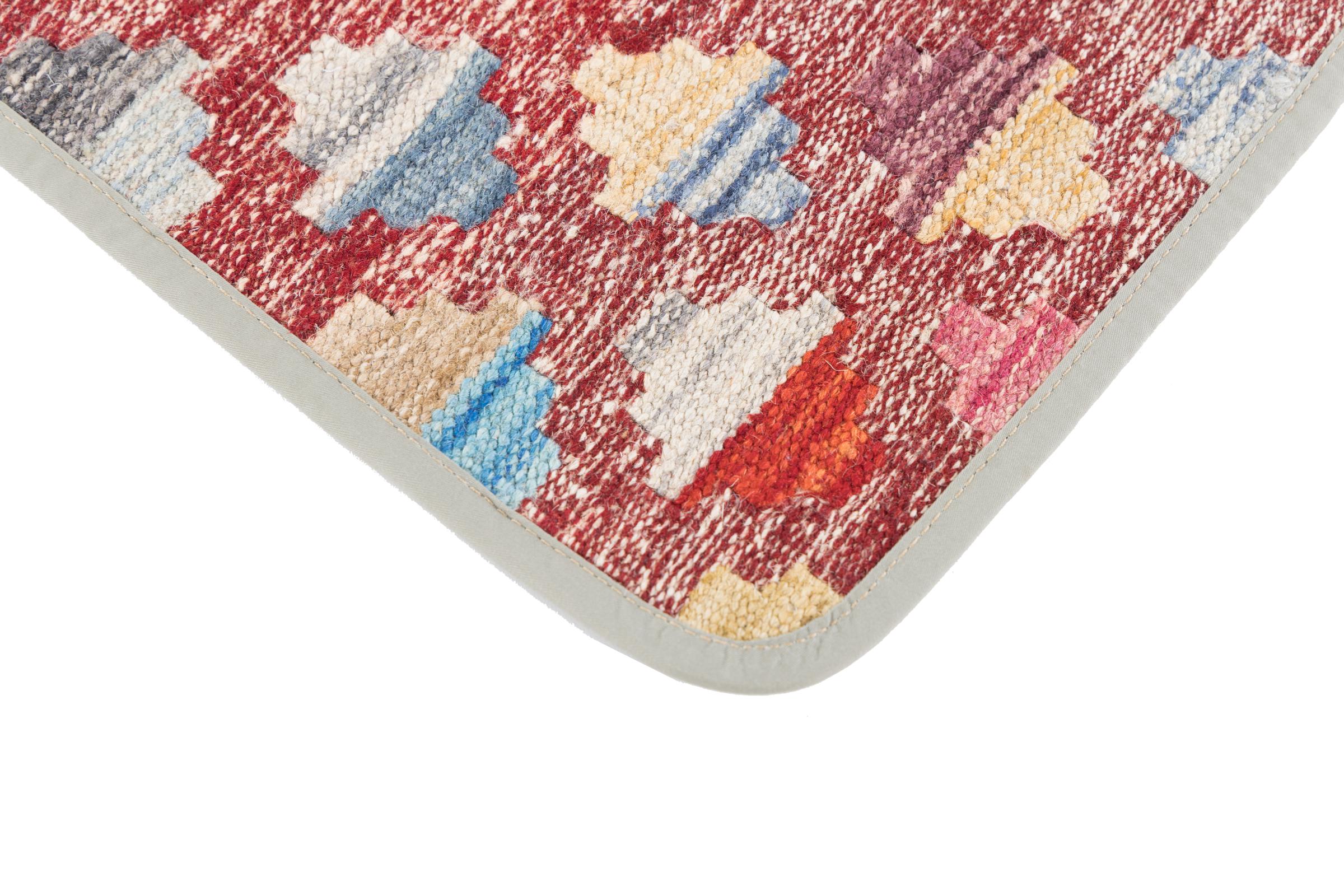 Denna handvävda kelim afghan är vacker tack vare de mångfacetterade färgerna och det typiska mönstret. Den var handvävd i Afghanistan av 100 % fårull. Den är utan tvekan mer robust och hållbar än maskintillverkade mattor. Dessutom har denna kelim en alldeles egen karaktär. En unik pjäs för dig och ditt hem som du aldrig kommer att hitta igen.