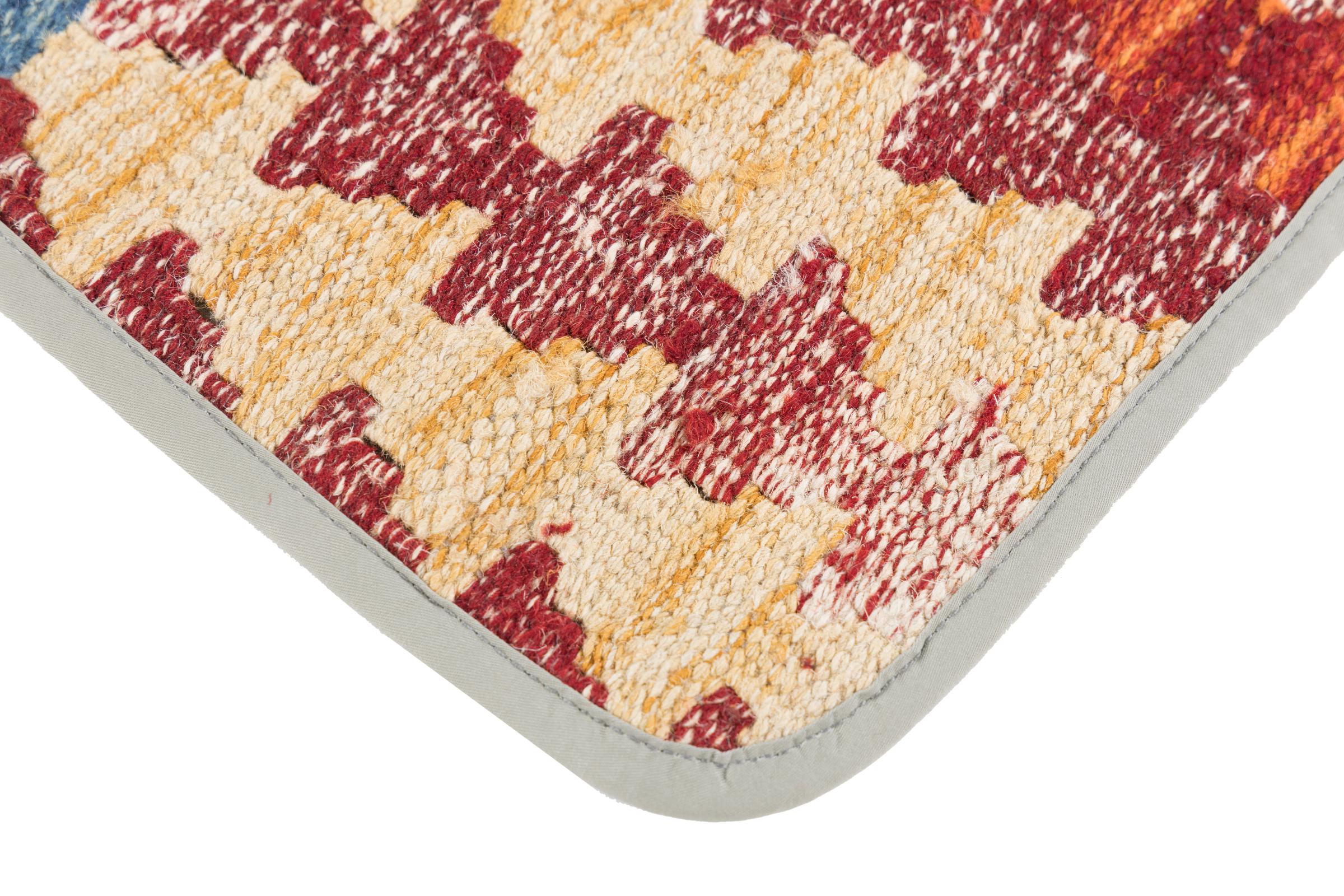 Denna handvävda kelim afghan är vacker tack vare de mångfacetterade färgerna och det typiska mönstret. Den var handvävd i Afghanistan av 100 % fårull. Den är utan tvekan mer robust och hållbar än maskintillverkade mattor. Dessutom har denna kelim en alldeles egen karaktär. En unik pjäs för dig och ditt hem som du aldrig kommer att hitta igen.