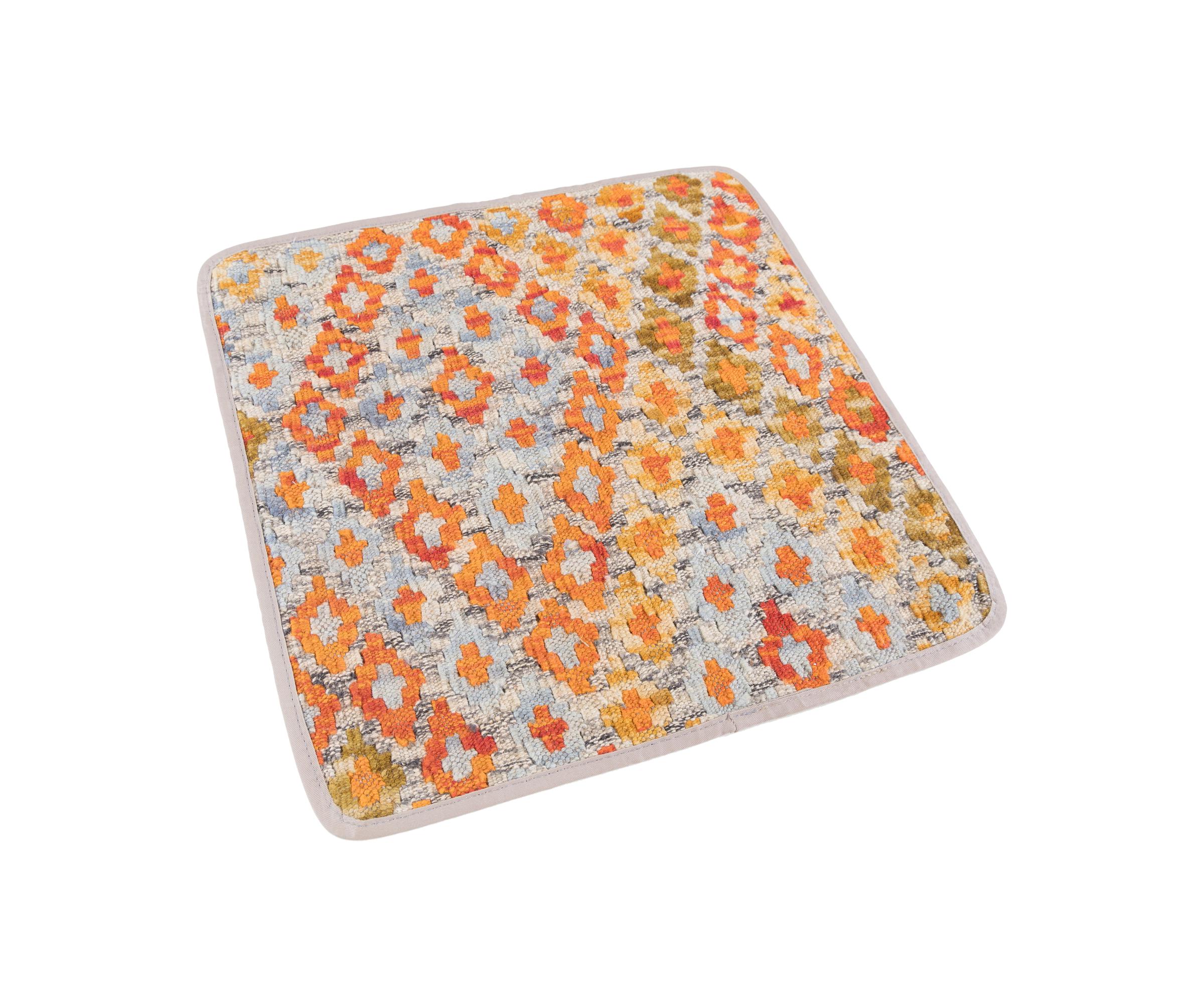 Mattans ID: 290341001835 Storlek: 45x45 cm Tjocklek: ap. 3 mm Tillverkning: Knuten för hand Lugg: Handspunnen ull Varp: Ull Ursprung: Afghanistan Ålder: Ny Vikt: ap. 0 kg I lager: Unik - Endast 1 i lager