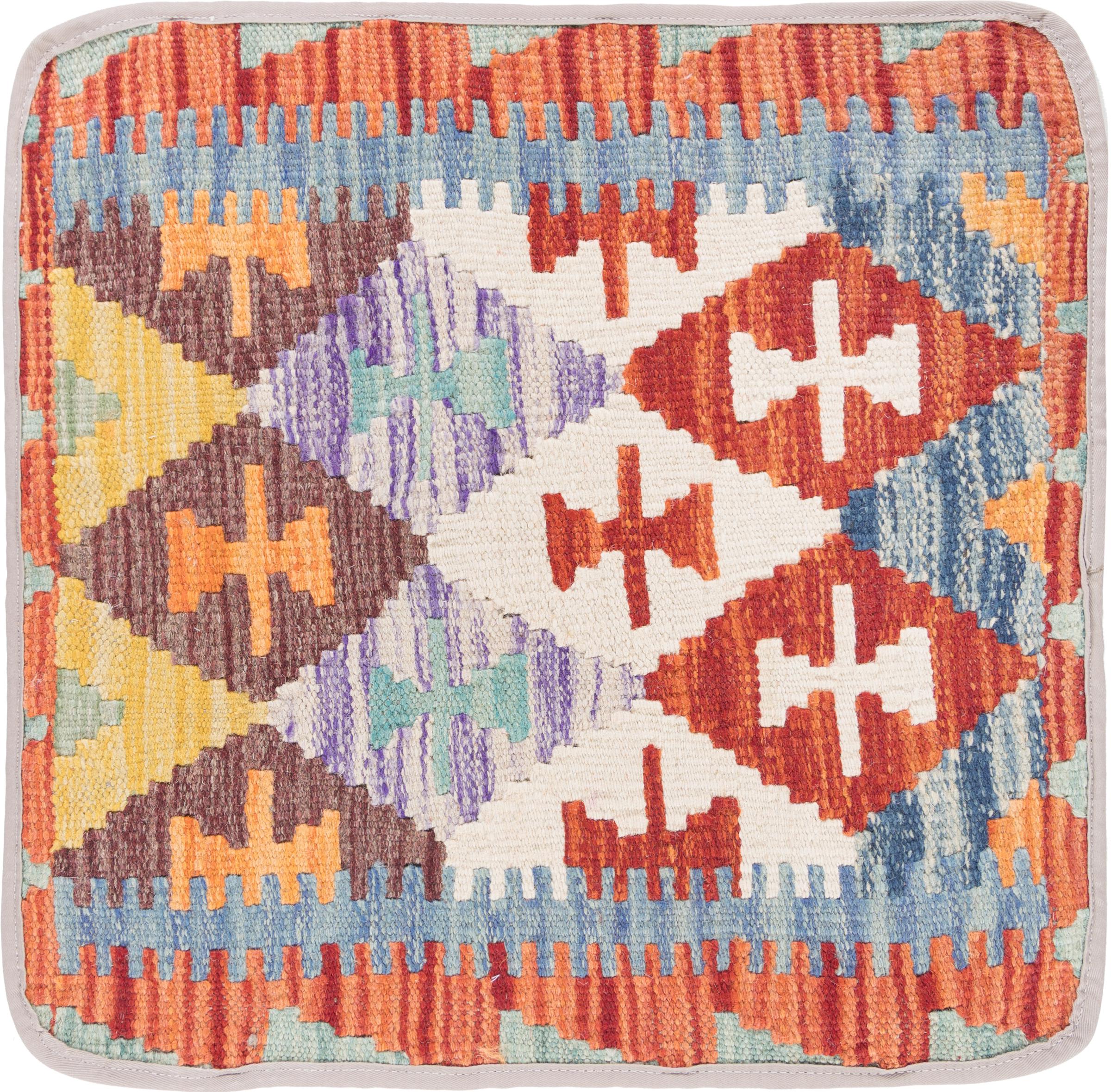 Denna handvävda kelim afghan är vacker tack vare de mångfacetterade färgerna och det typiska mönstret. Den var handvävd i Afghanistan av 100 % fårull. Den är utan tvekan mer robust och hållbar än maskintillverkade mattor. Dessutom har denna kelim en alldeles egen karaktär. En unik pjäs för dig och ditt hem som du aldrig kommer att hitta igen.