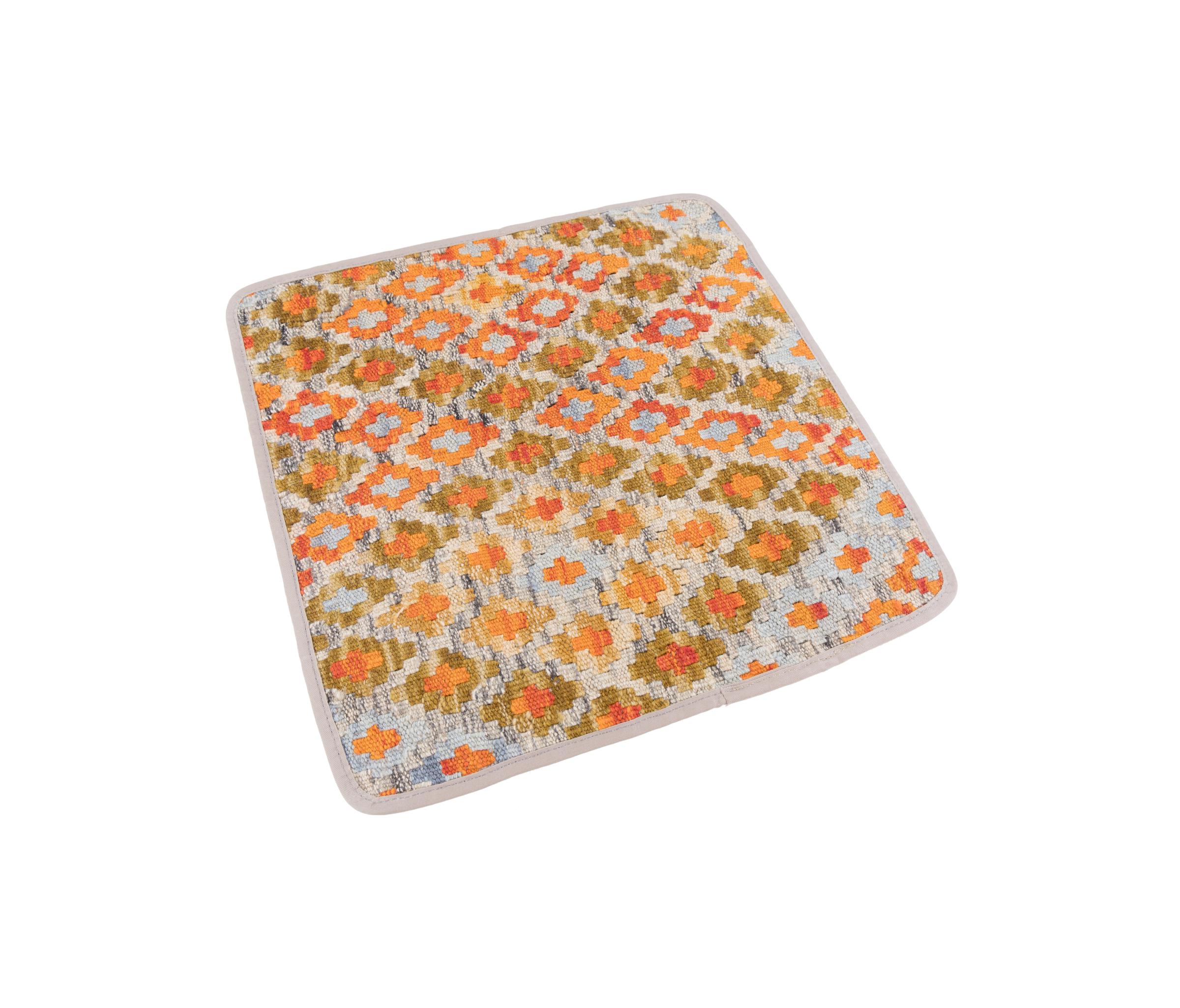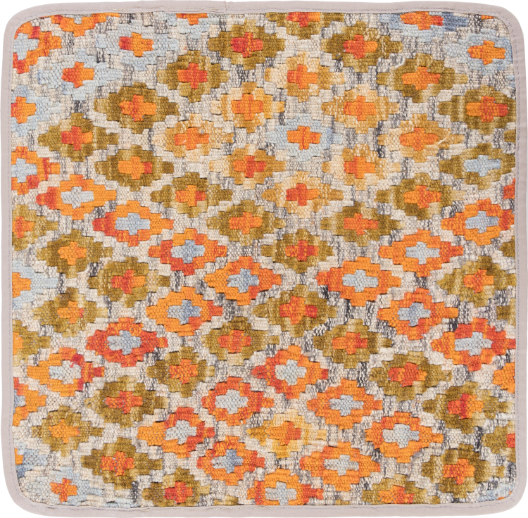 Mattans ID: 290363001857 Storlek: 45x45 cm Tjocklek: ap. 3 mm Tillverkning: Knuten för hand Lugg: Handspunnen ull Varp: Ull Ursprung: Afghanistan Ålder: Ny Vikt: ap. 0 kg I lager: Unik - Endast 1 i lager