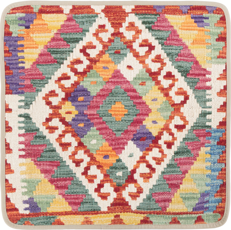 Mattans ID: 28861000104 Storlek: 50x50 cm Tjocklek: ap. 3 mm Tillverkning: Knuten för hand Lugg: Handspunnen ull Varp: Ull Ursprung: Afghanistan Ålder: Ny Vikt: ap. 0 kg I lager: Unik - Endast 1 i lager