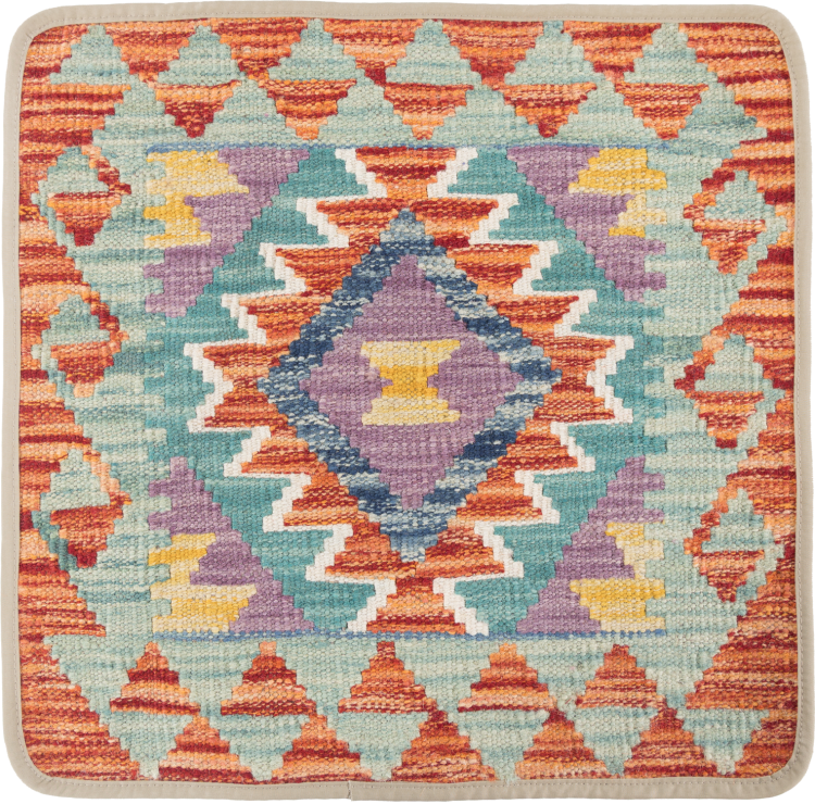Mattans ID: 28862400118 Storlek: 50x50 cm Tjocklek: ap. 3 mm Tillverkning: Knuten för hand Lugg: Handspunnen ull Varp: Ull Ursprung: Afghanistan Ålder: Ny Vikt: ap. 0 kg I lager: Unik - Endast 1 i lager