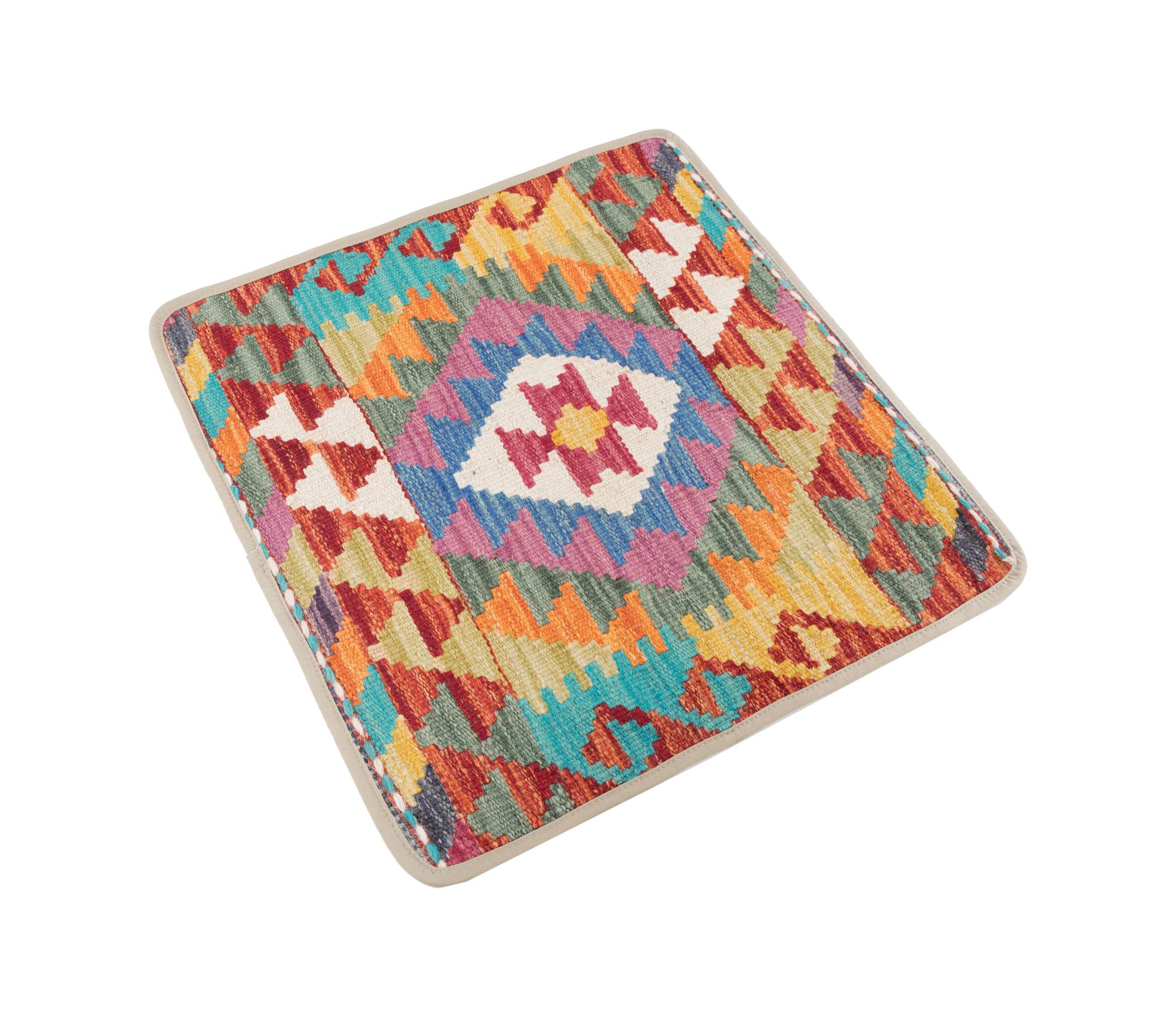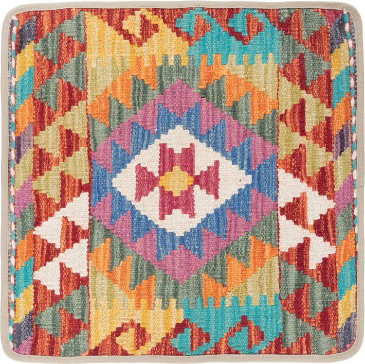 Mattans ID: 28862600120 Storlek: 50x50 cm Tjocklek: ap. 3 mm Tillverkning: Knuten för hand Lugg: Handspunnen ull Varp: Ull Ursprung: Afghanistan Ålder: Ny Vikt: ap. 0 kg I lager: Unik - Endast 1 i lager