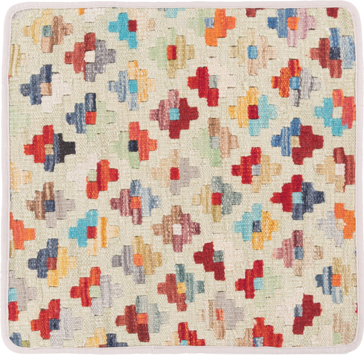Mattans ID: 28867600170 Storlek: 50x50 cm Tjocklek: ap. 3 mm Tillverkning: Knuten för hand Lugg: Handspunnen ull Varp: Ull Ursprung: Afghanistan Ålder: Ny Vikt: ap. 0 kg I lager: Unik - Endast 1 i lager
