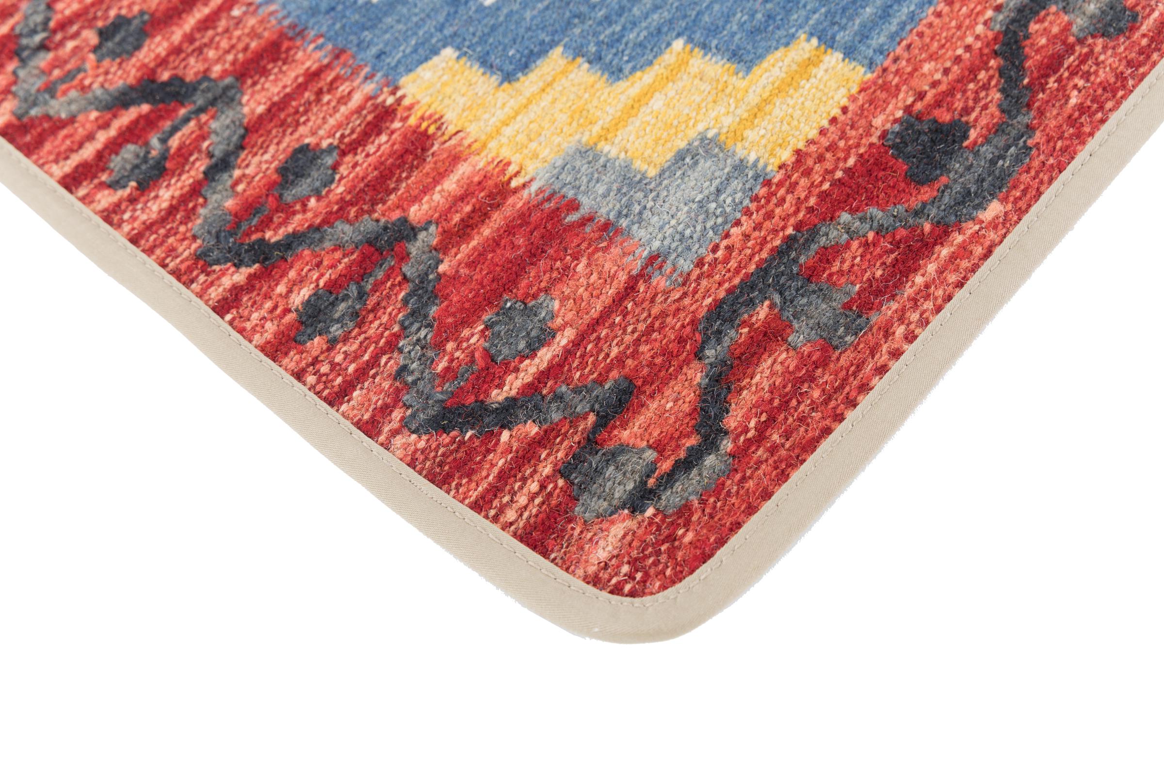 Denna handvävda kelim afghan är vacker tack vare de mångfacetterade färgerna och det typiska mönstret. Den var handvävd i Afghanistan av 100 % fårull. Den är utan tvekan mer robust och hållbar än maskintillverkade mattor. Dessutom har denna kelim en alldeles egen karaktär. En unik pjäs för dig och ditt hem som du aldrig kommer att hitta igen.