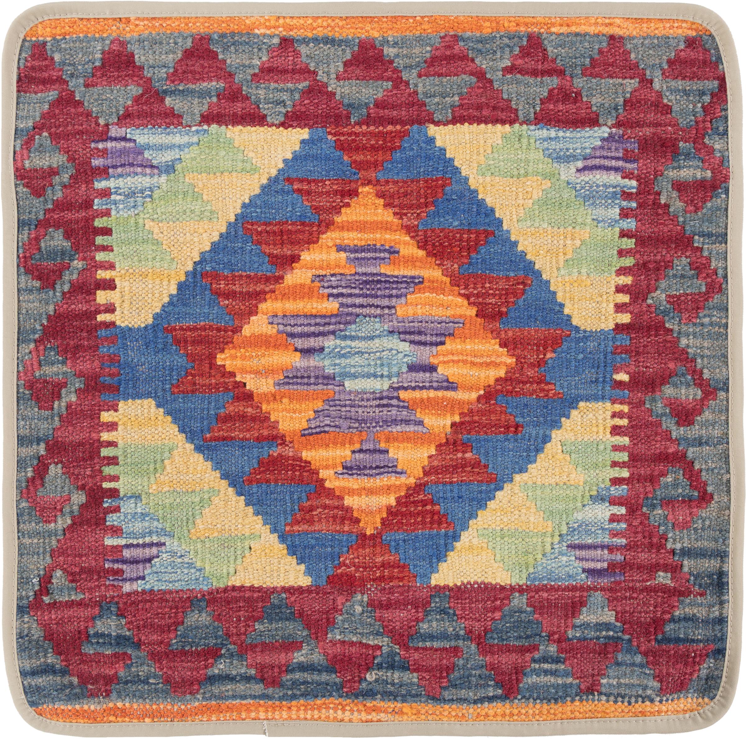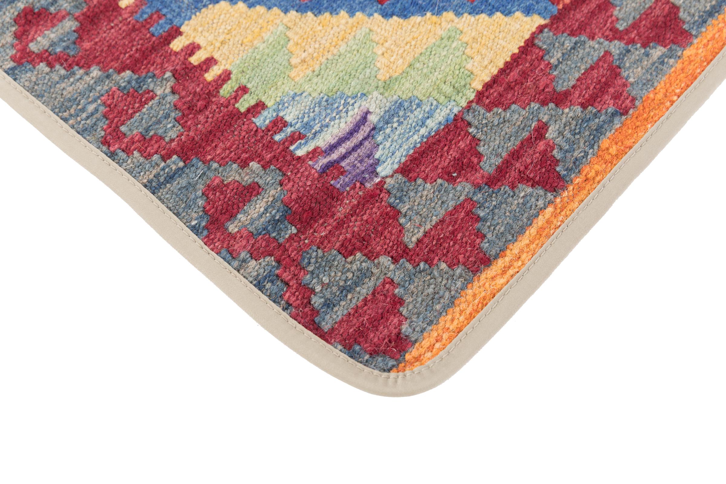 Denna handvävda kelim afghan är vacker tack vare de mångfacetterade färgerna och det typiska mönstret. Den var handvävd i Afghanistan av 100 % fårull. Den är utan tvekan mer robust och hållbar än maskintillverkade mattor. Dessutom har denna kelim en alldeles egen karaktär. En unik pjäs för dig och ditt hem som du aldrig kommer att hitta igen.