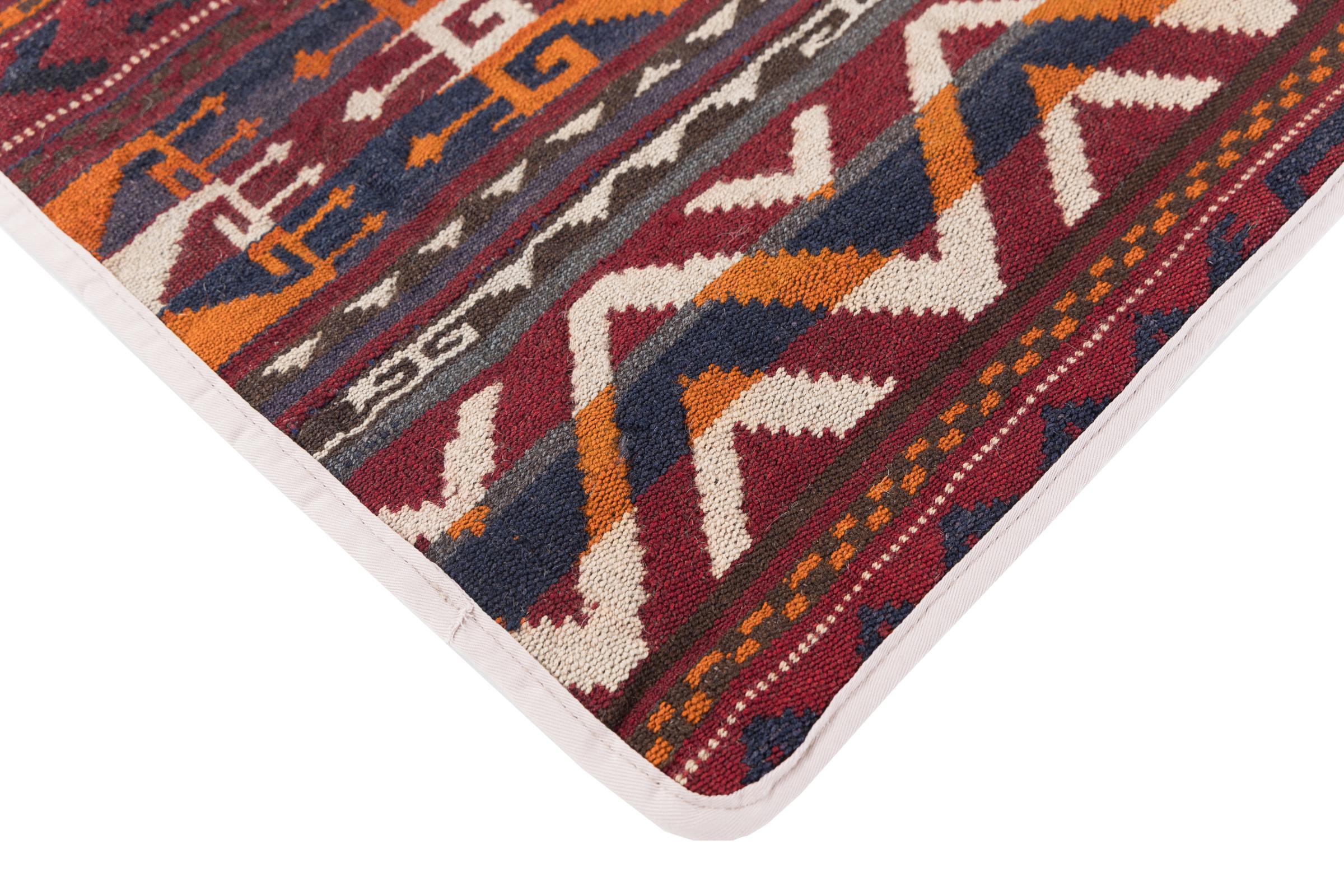 Denna handvävda kelim afghan är vacker tack vare de mångfacetterade färgerna och det typiska mönstret. Den var handvävd i Afghanistan av 100 % fårull. Den är utan tvekan mer robust och hållbar än maskintillverkade mattor. Dessutom har denna kelim en alldeles egen karaktär. En unik pjäs för dig och ditt hem som du aldrig kommer att hitta igen.